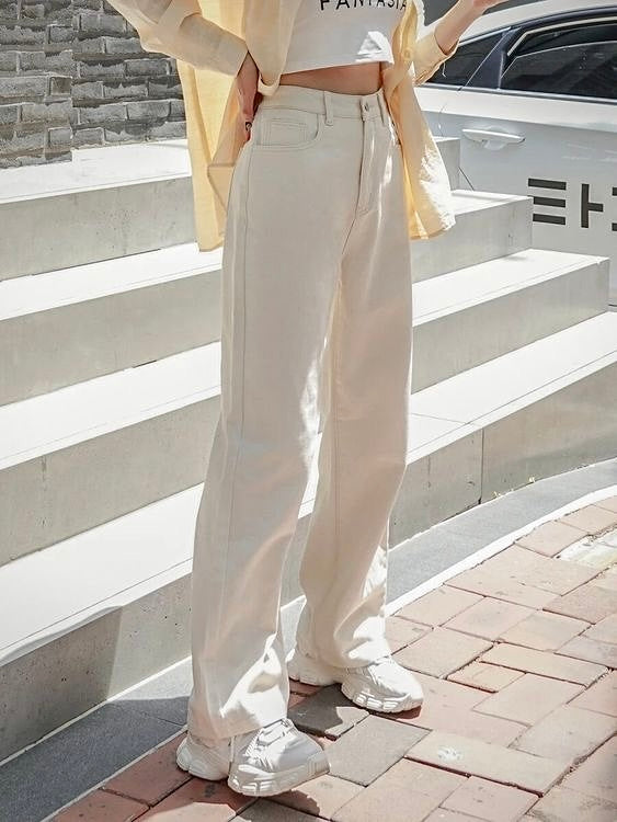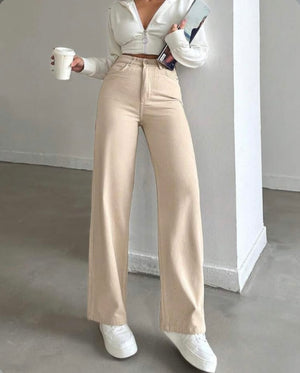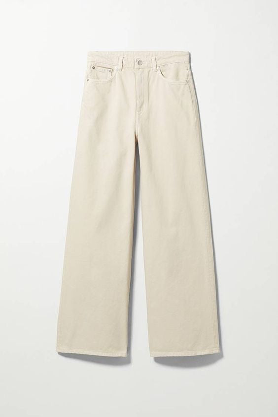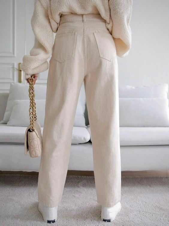 Beige High-Waist Wide Leg Denim