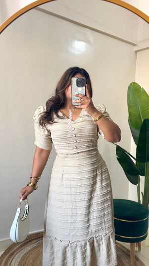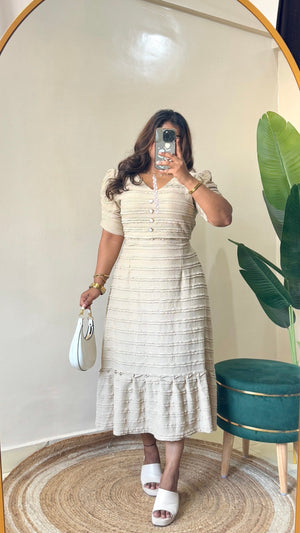Beige Ruffle Dress(Free Size: 30-38 Bust)