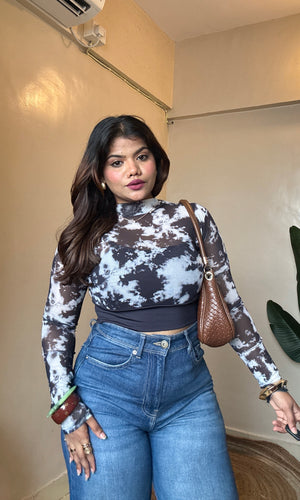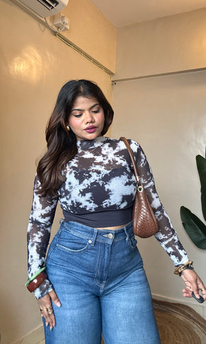 Black Marble Print Mesh Padded Top