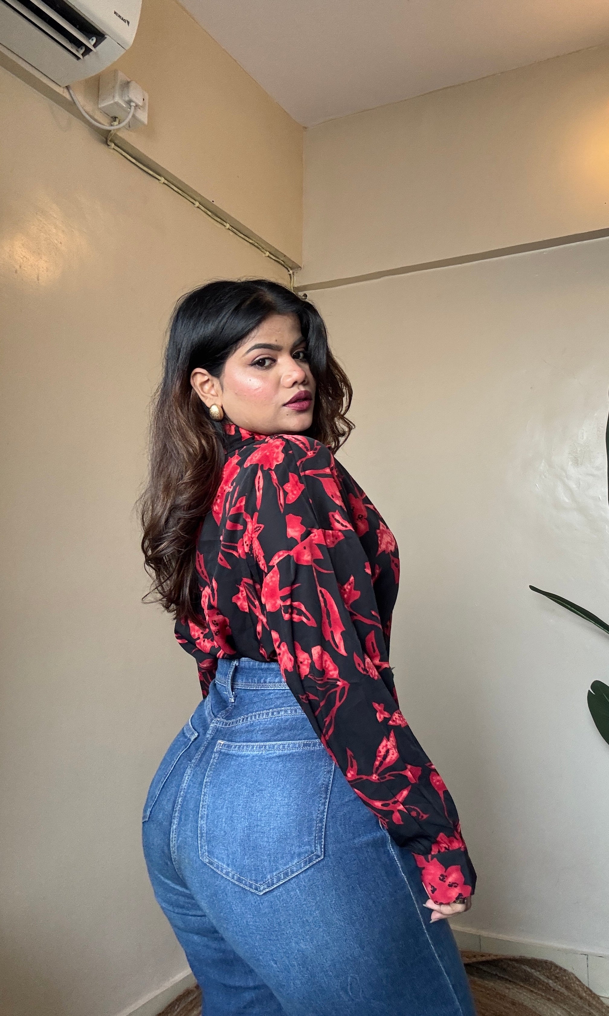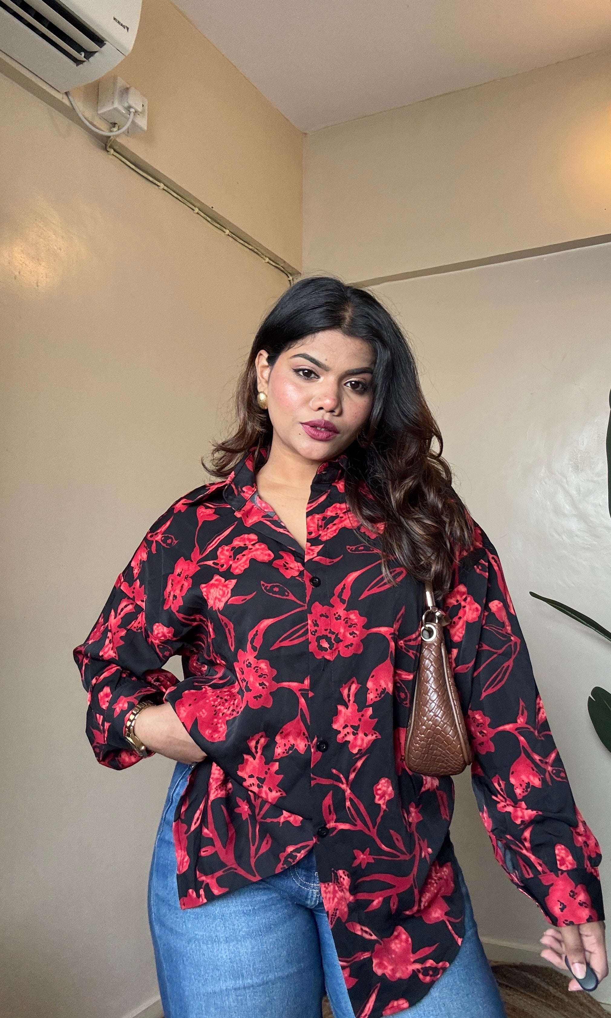 Black Red Floral Printed Imported Shirt