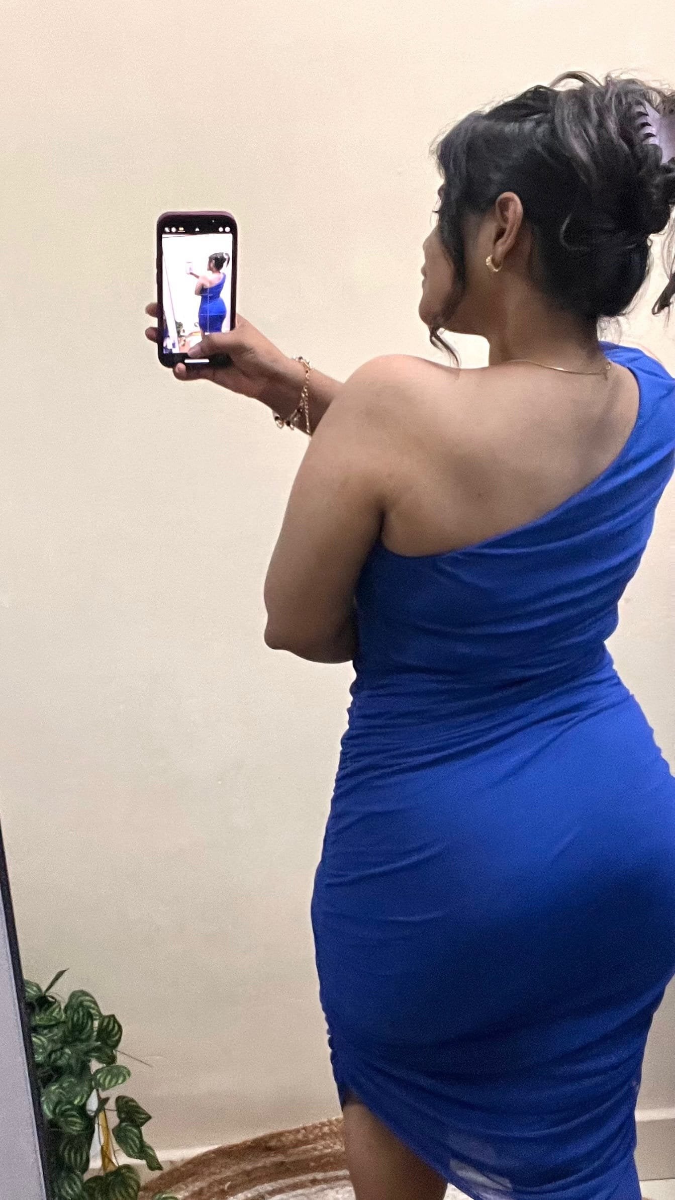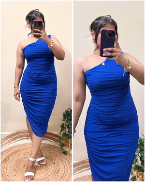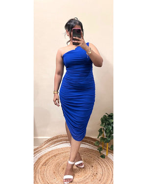 Blue One Shoulder Asymmetrical Mesh Bodycon Dress