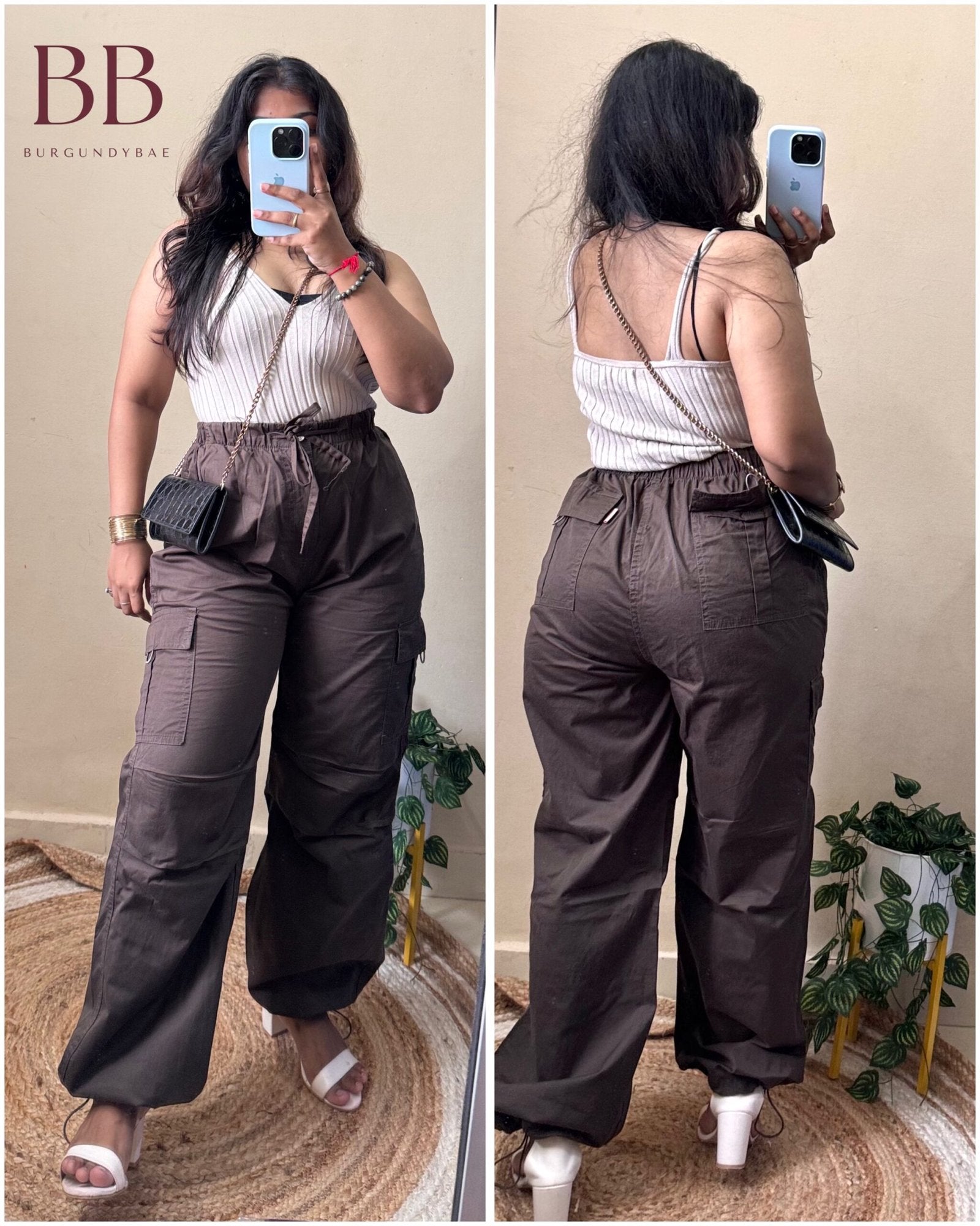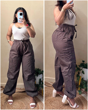 Brown Cotton Parachute Pants