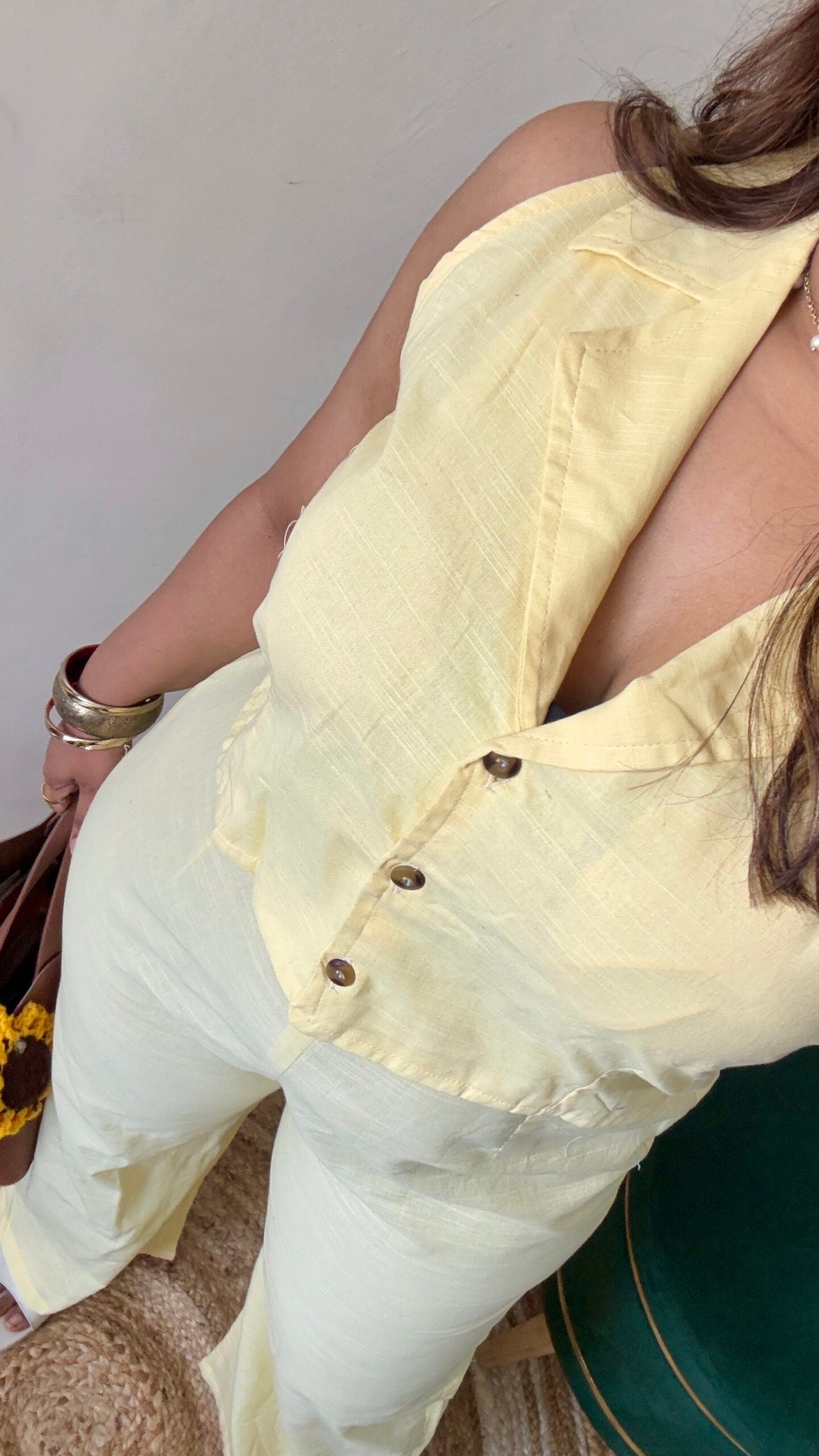 Butter Yellow Waistcoat With Pants Co-Ord Set