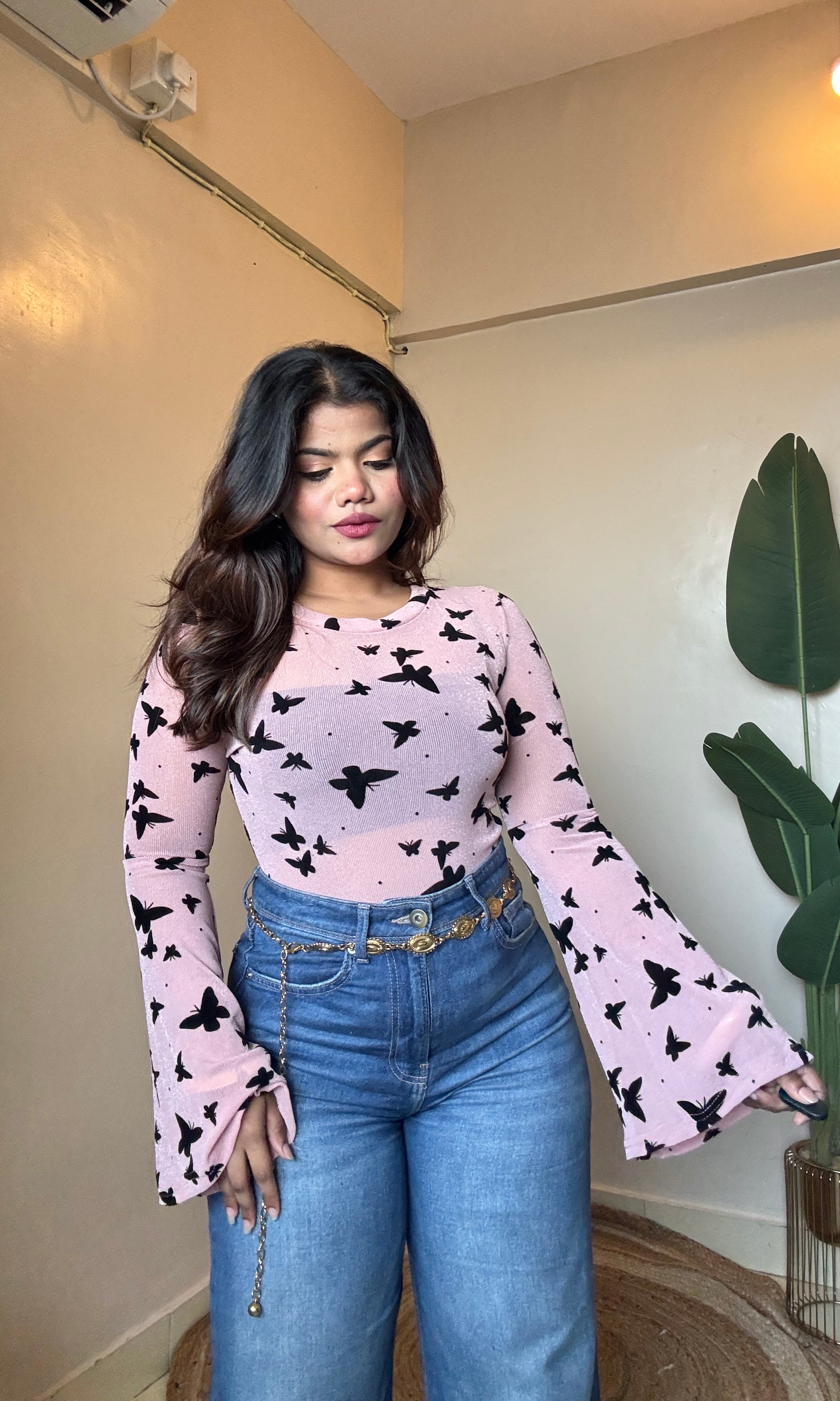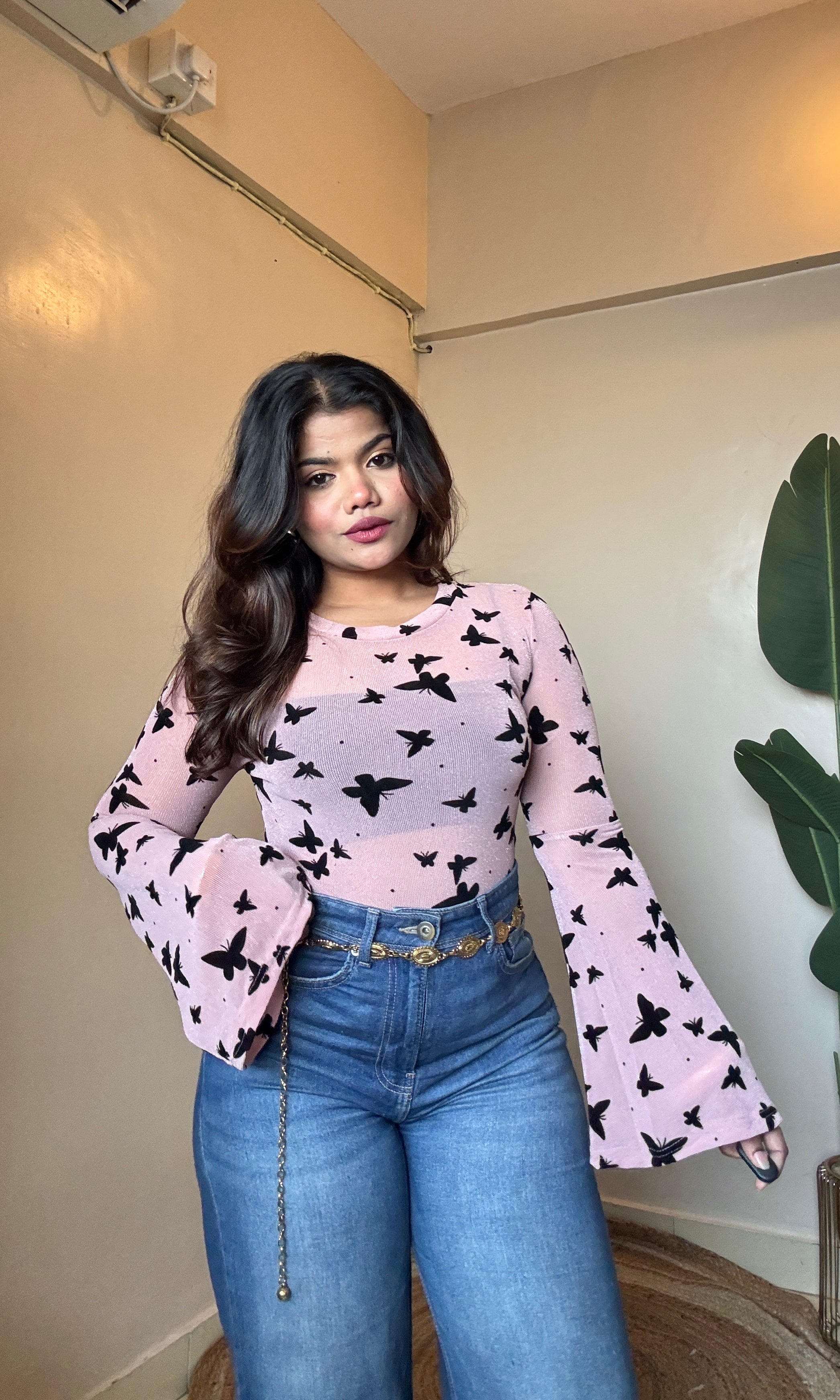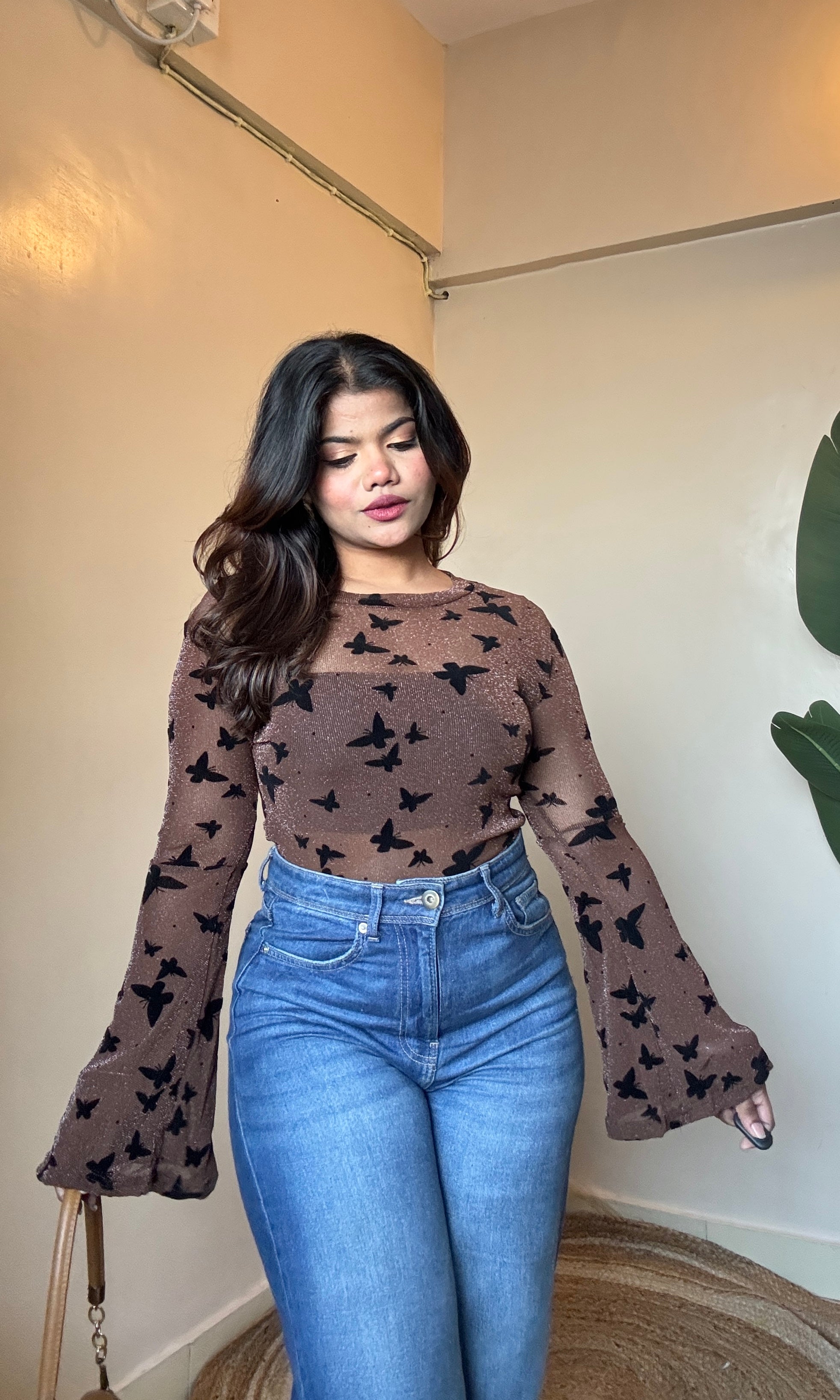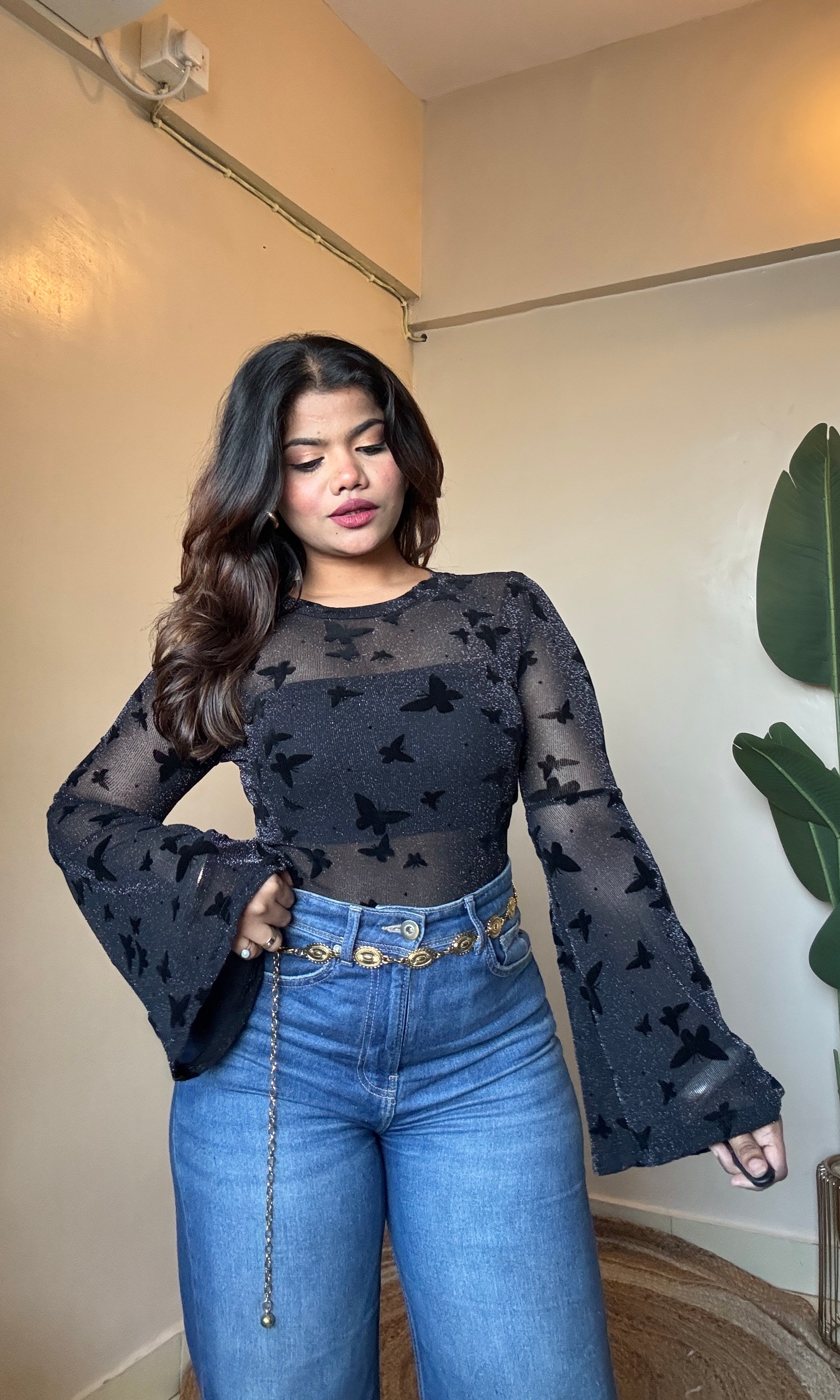 Butterfly Bell Sleeve Mesh Top