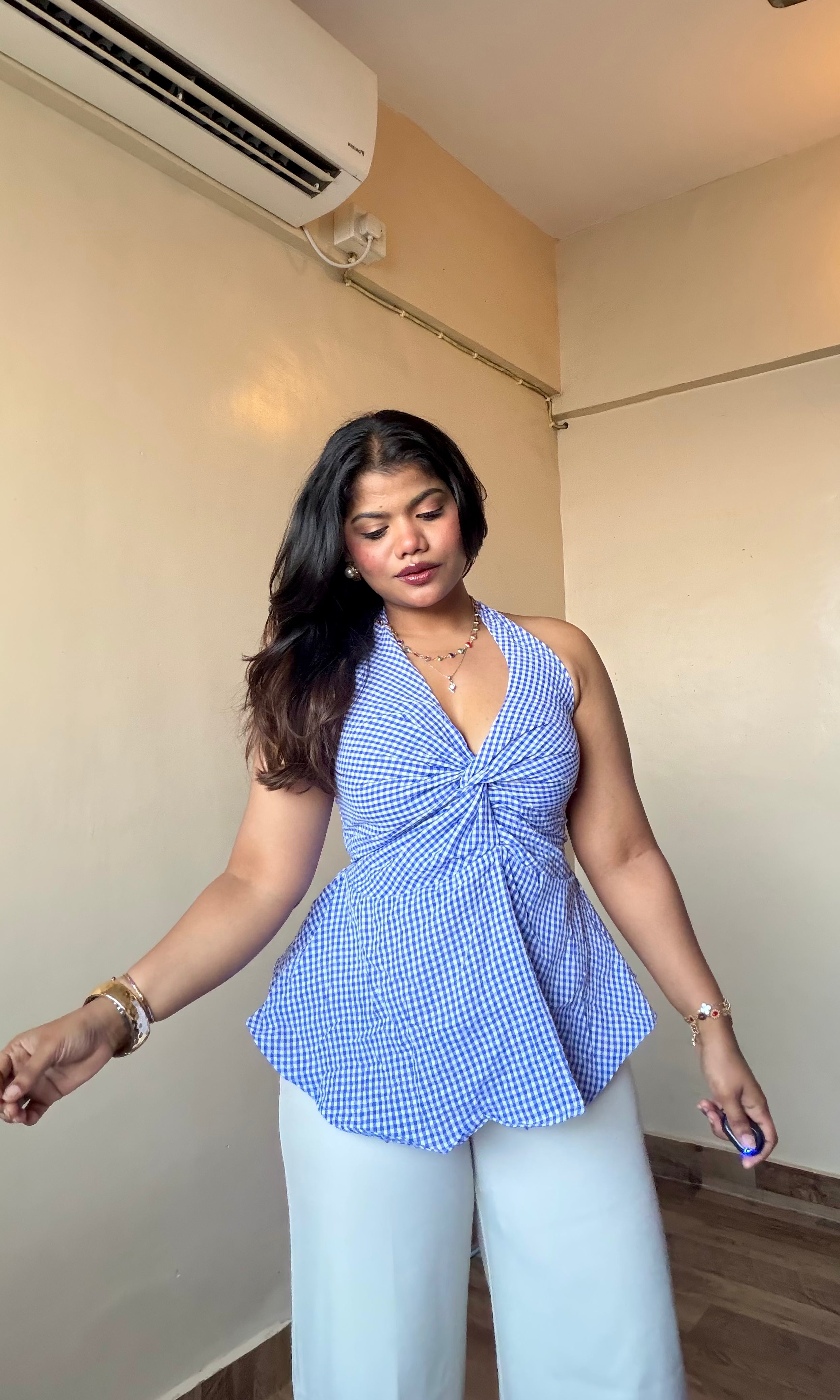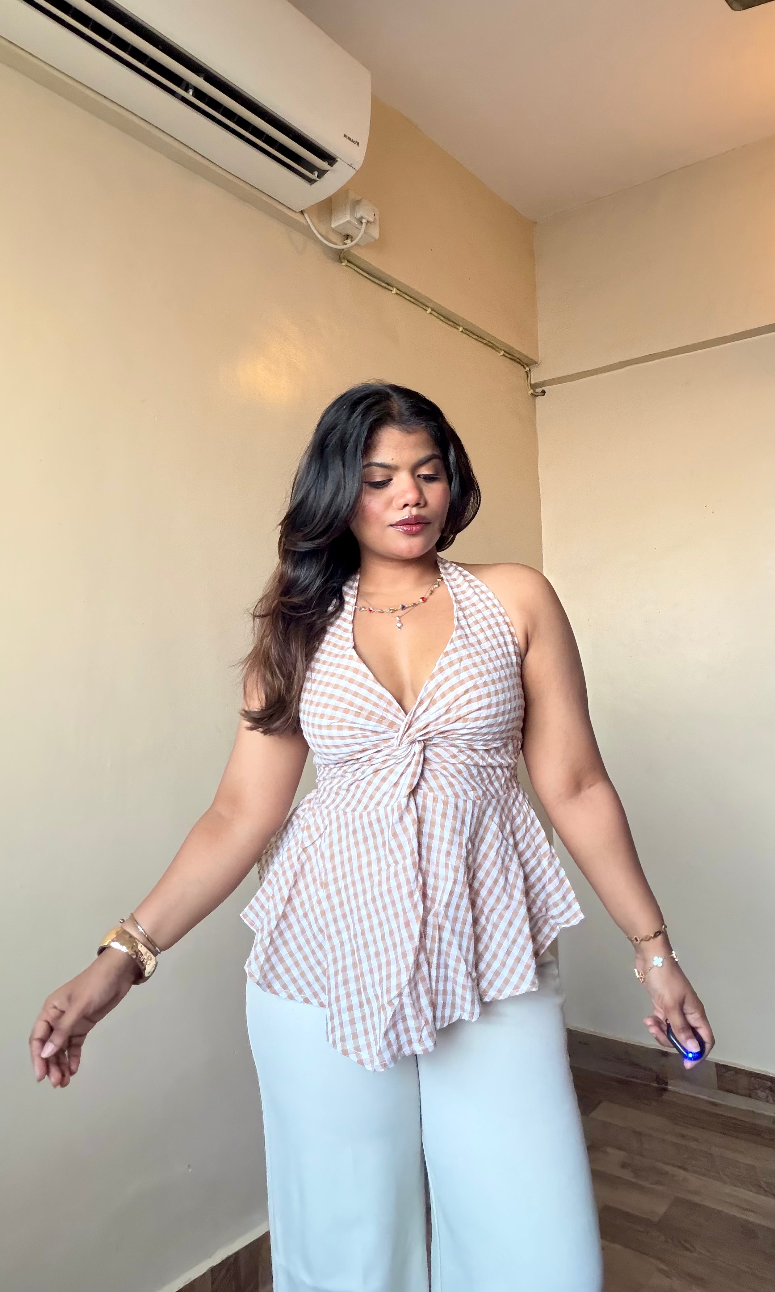 Checker Halter Neck Top