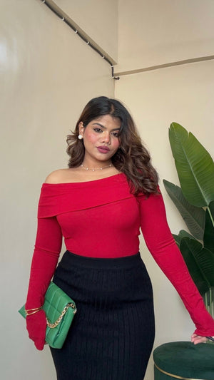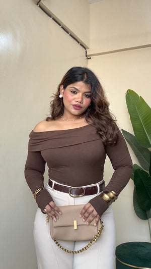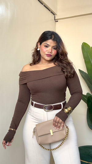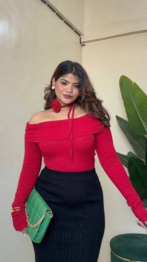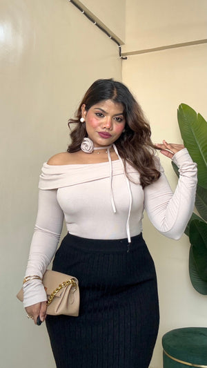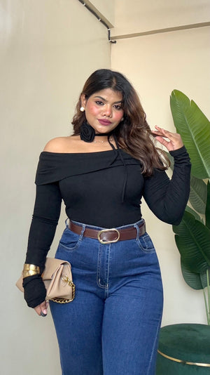 Off-Shoulder Top With Flower Bow - #9908