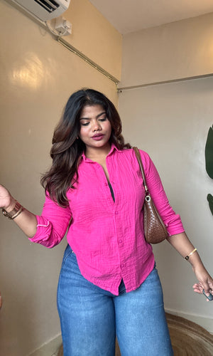 Fuchsia Pink Cotton Mulmul Shirt