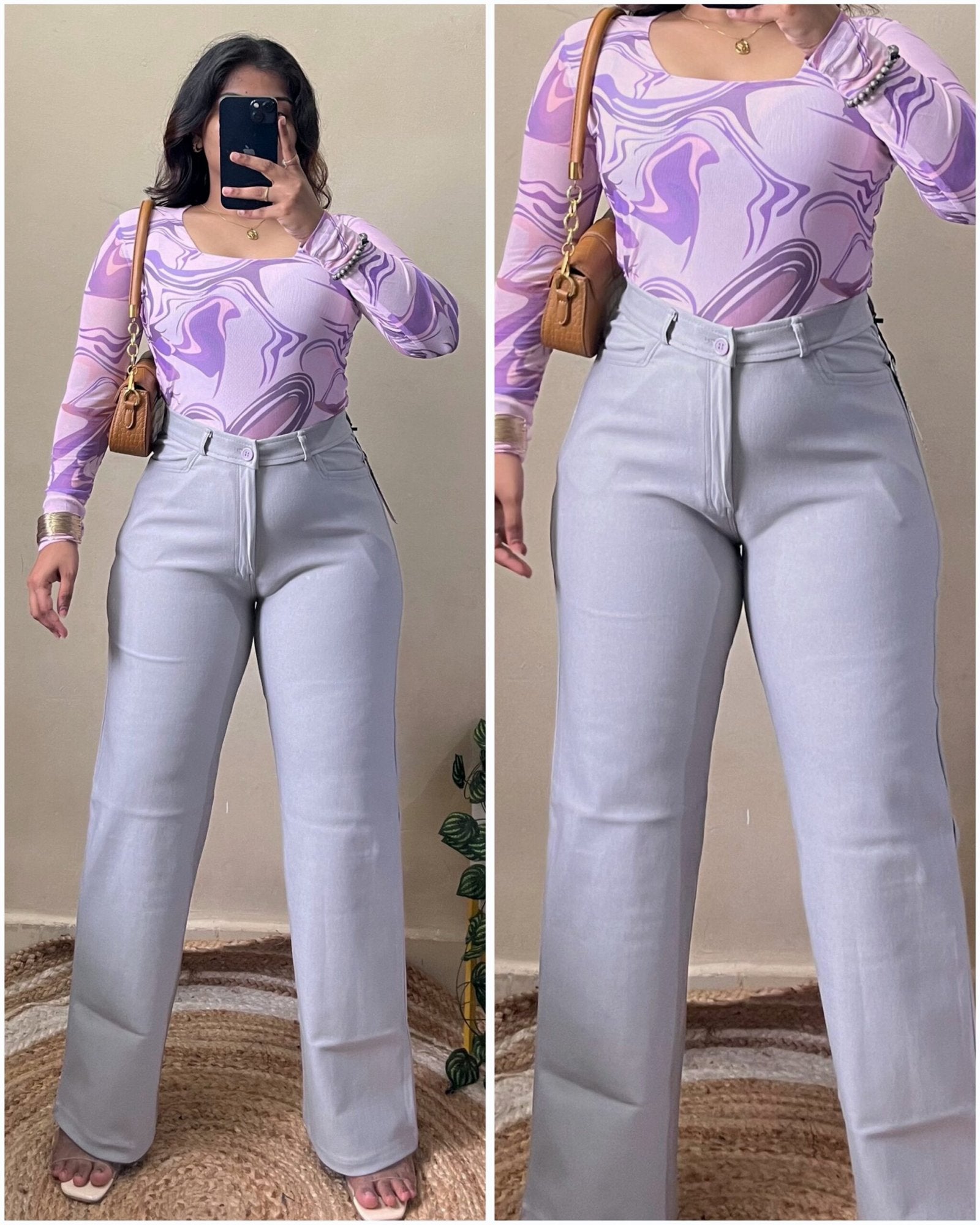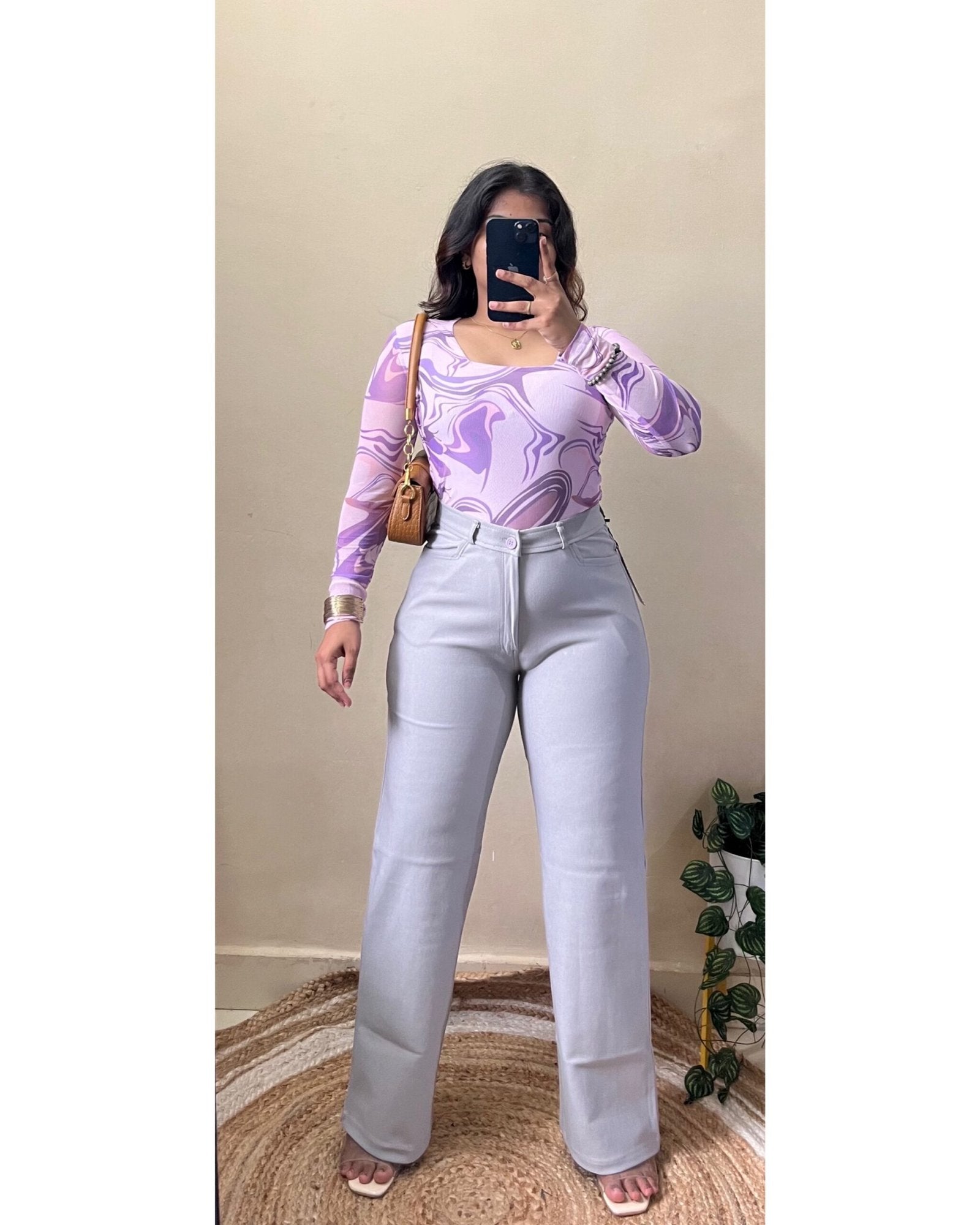 Grey High Waisted Straight Fit Pant