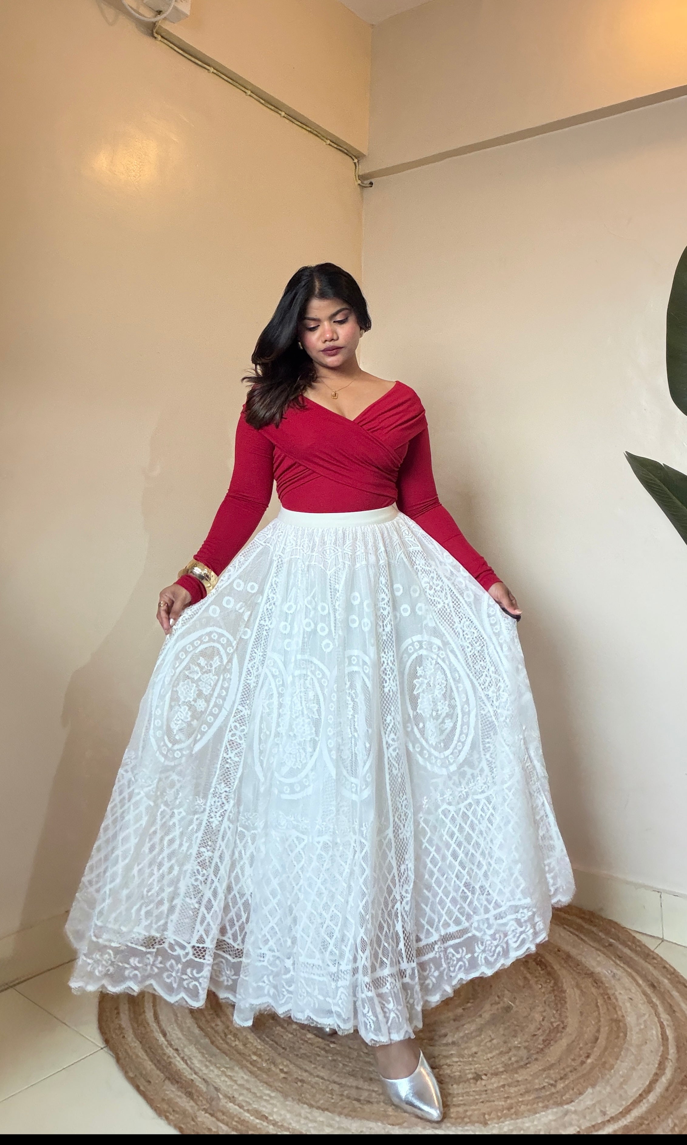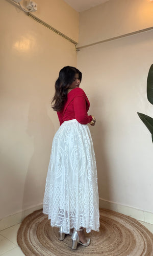 Ivory White Statement Lace Skirt