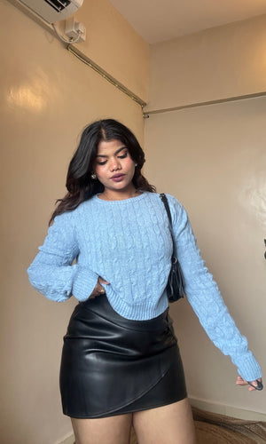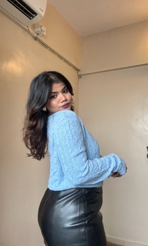 Blue Cable-Cross Knit Pullover