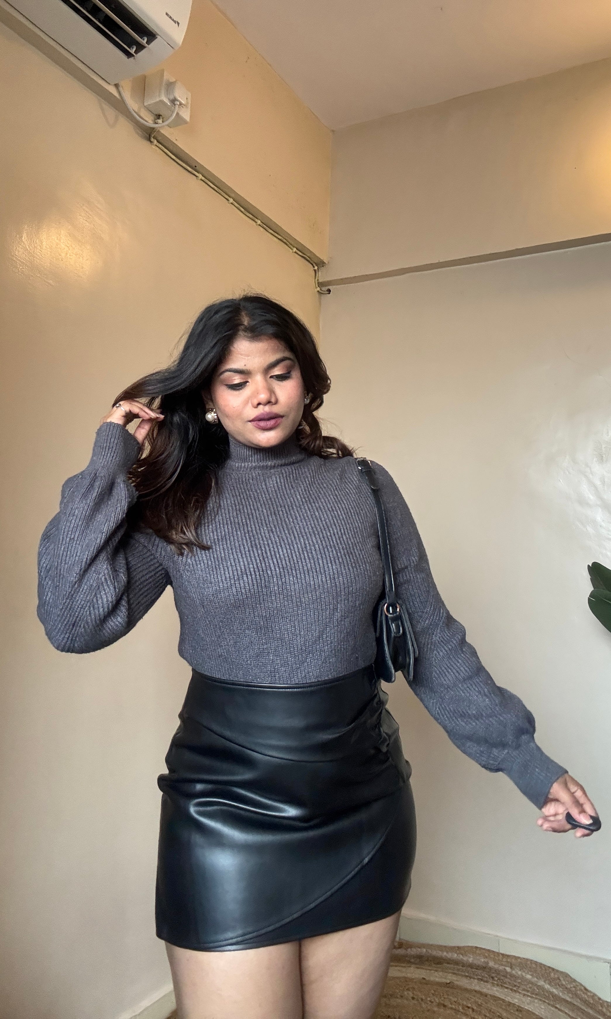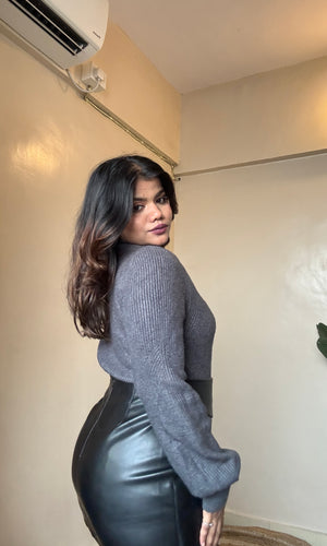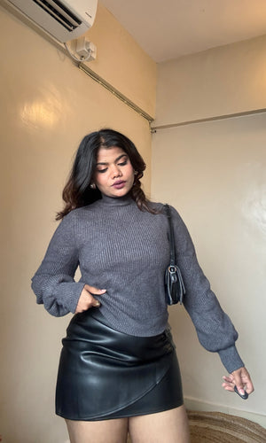 Grey Puffy Sleeve Knit Pullover