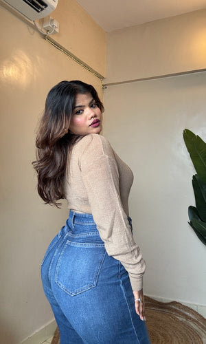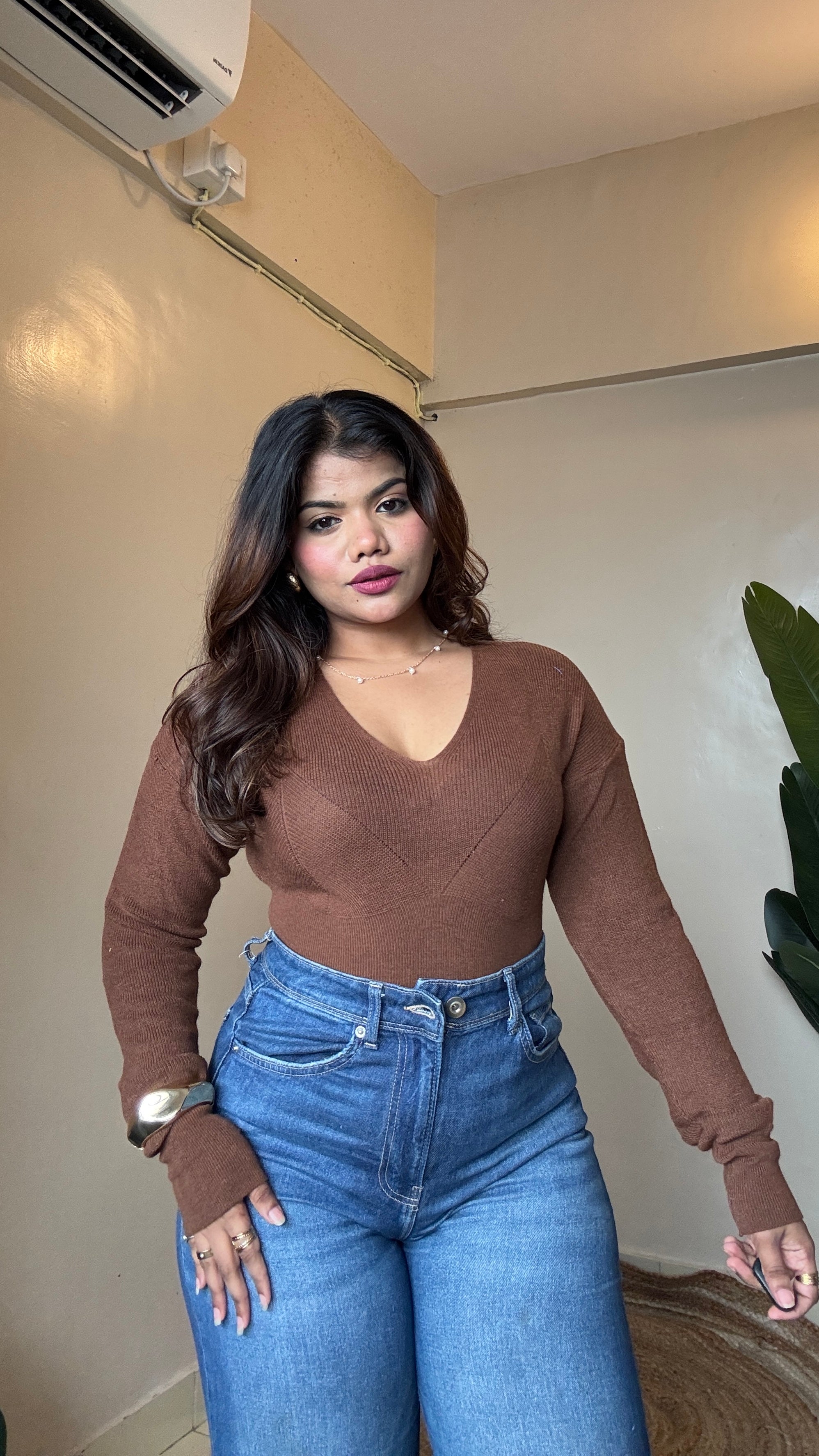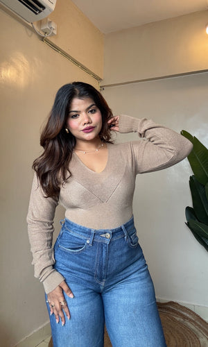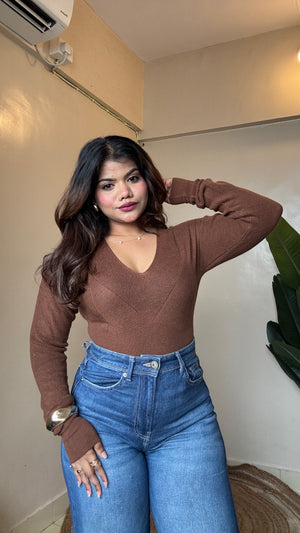 Knit V neck Pullover Top