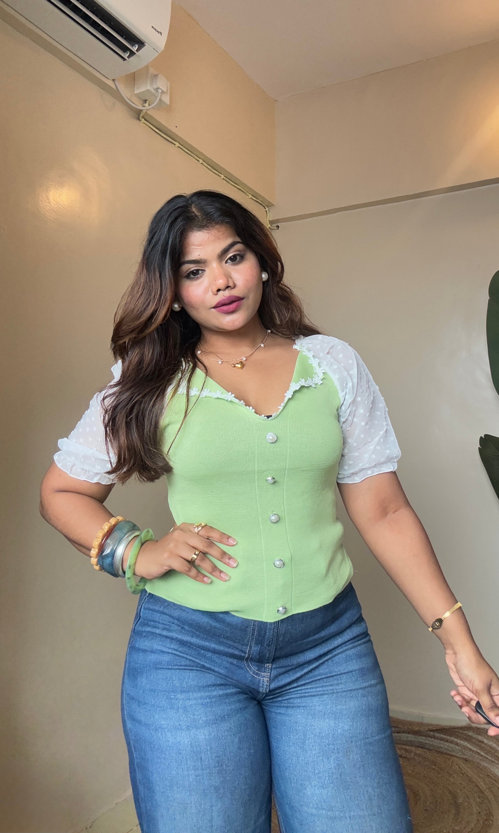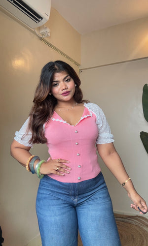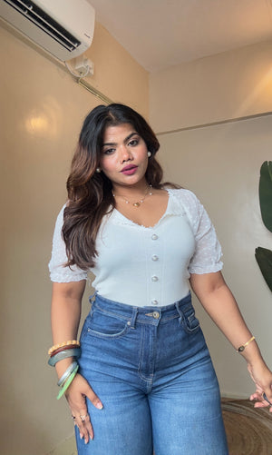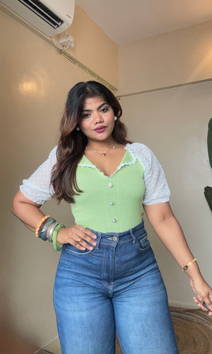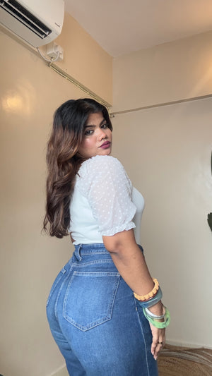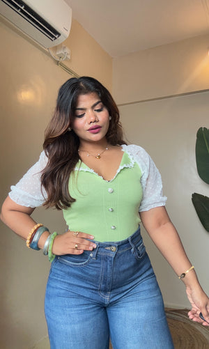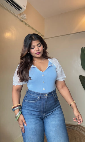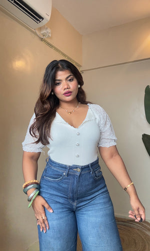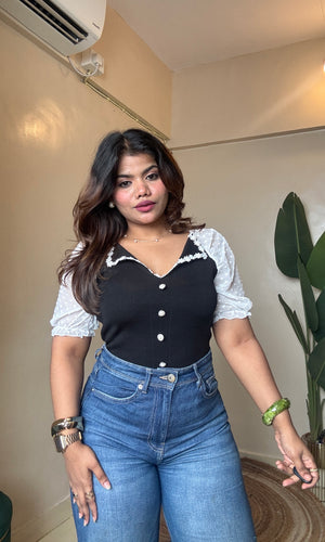 Korean Lacy Collar Puffy Sleeve Top