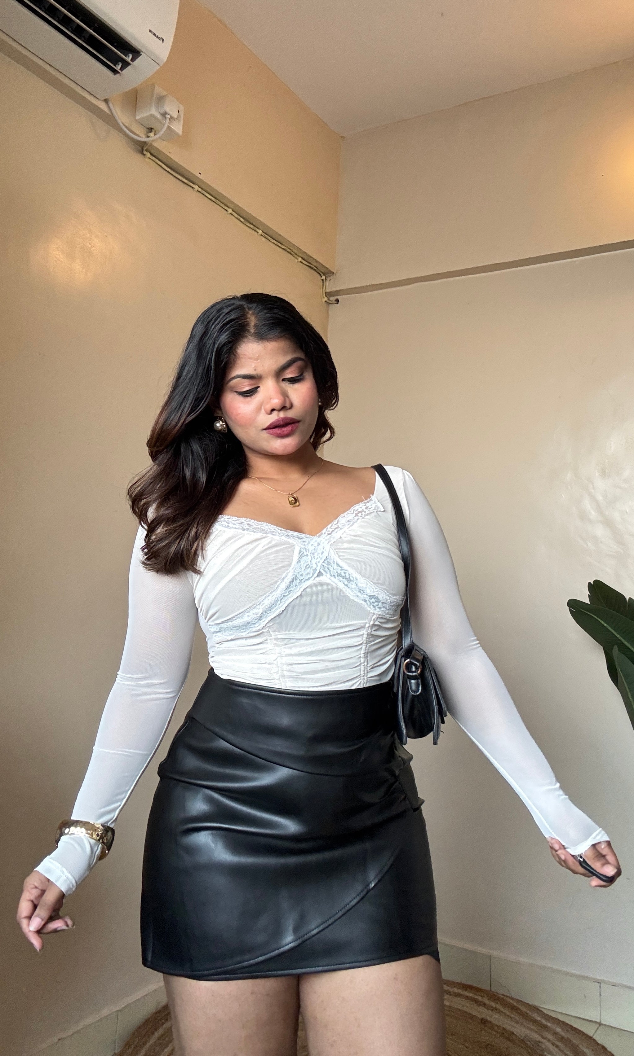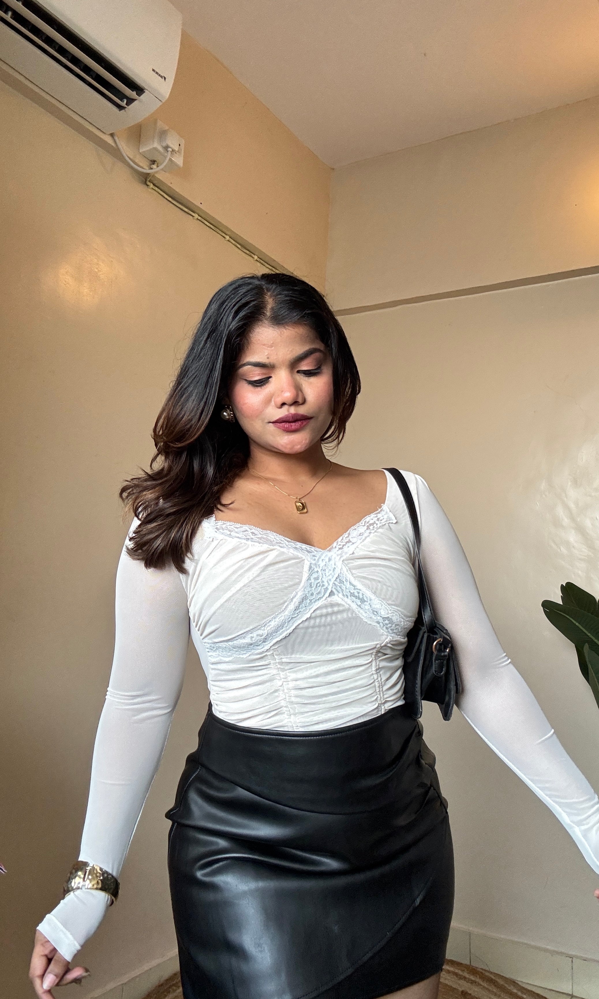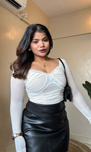Lacework Ruched Mesh Top
