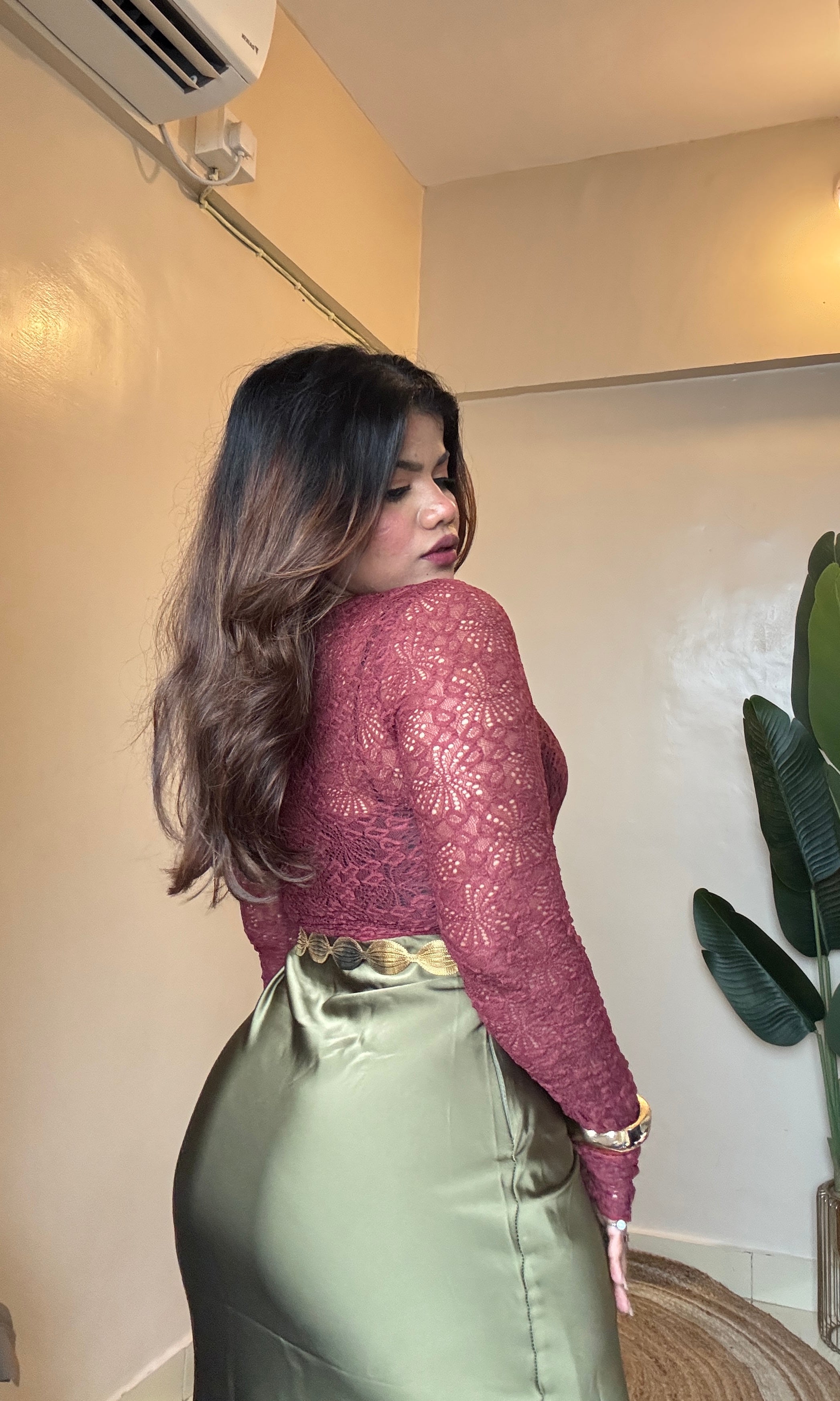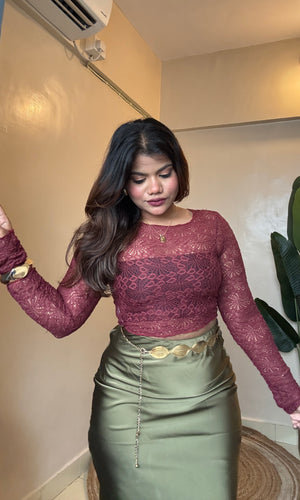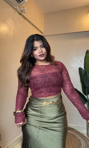Maroon Sheer Net Top Comes With Inner