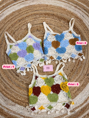 Multi-colour Boho Crochet Top(Free Size: 30-34 Bust)