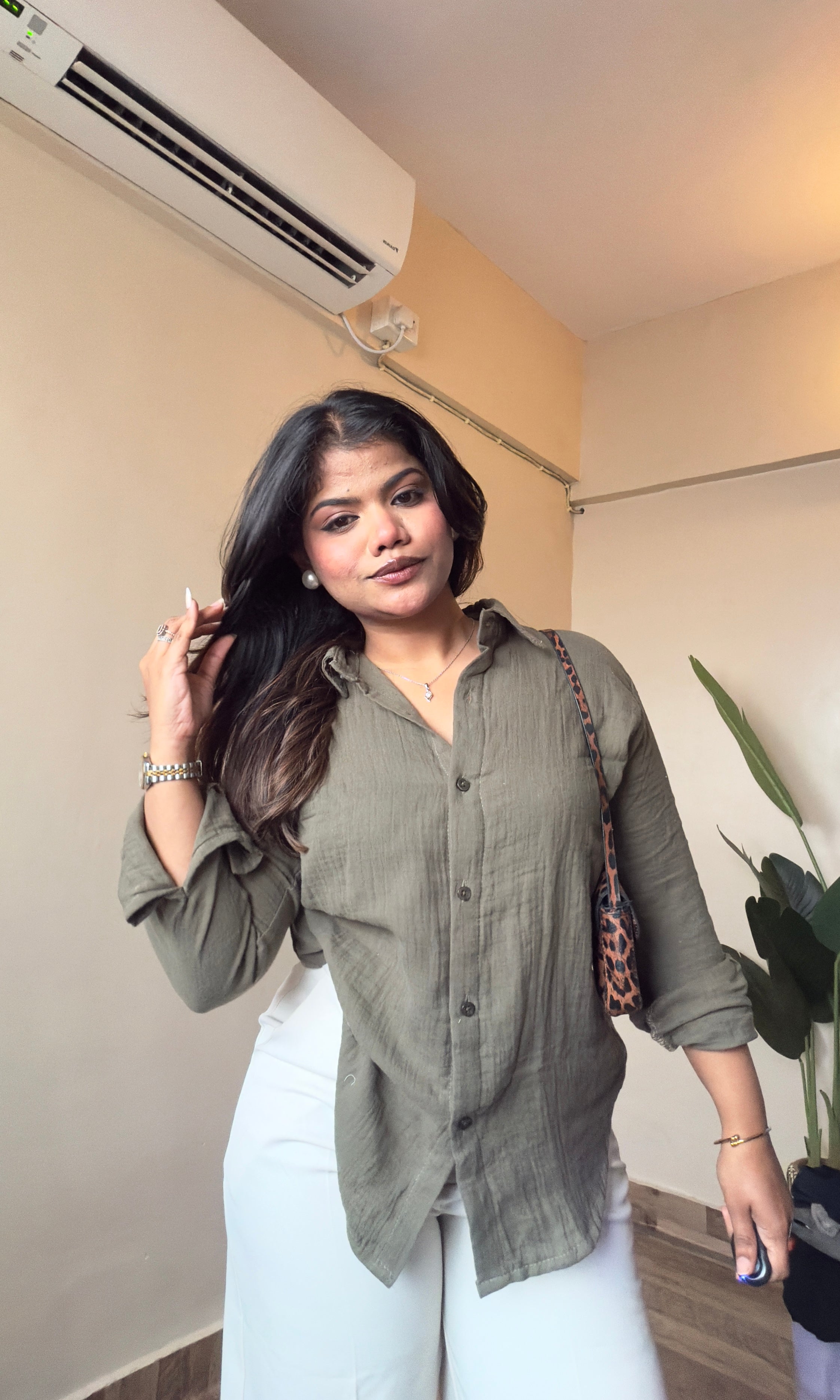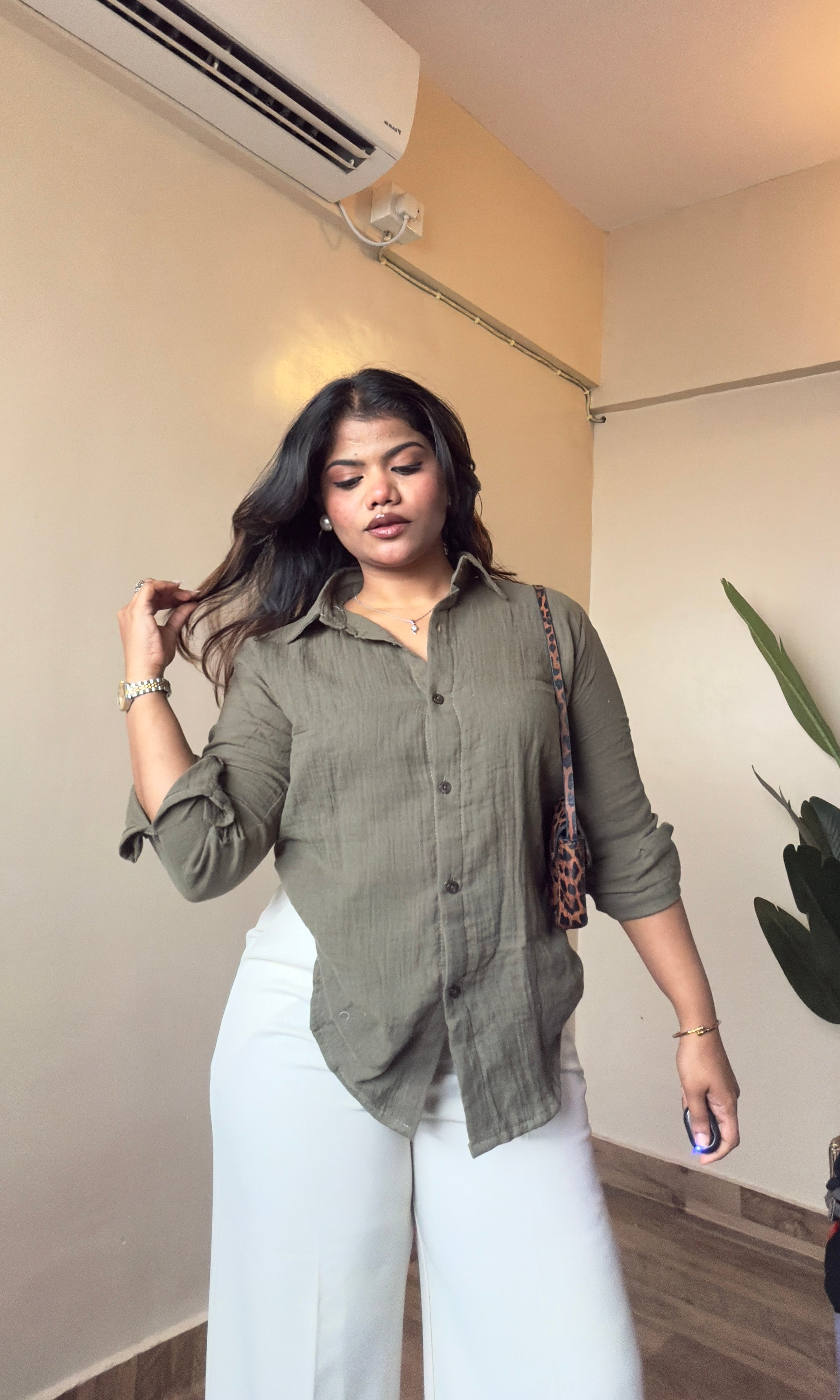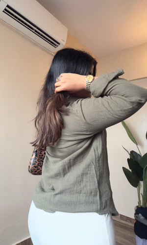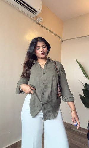 Olive Green Cotton Mulmul Shirt