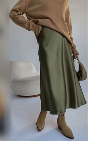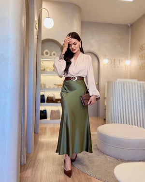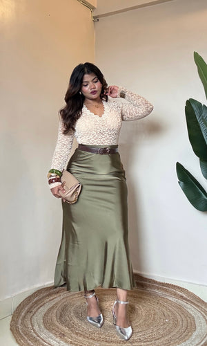 Bestseller Premium Olive Green Satin Skirt