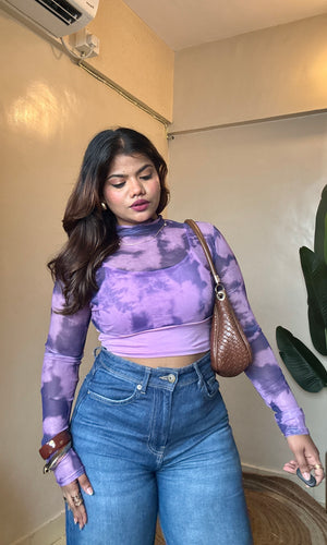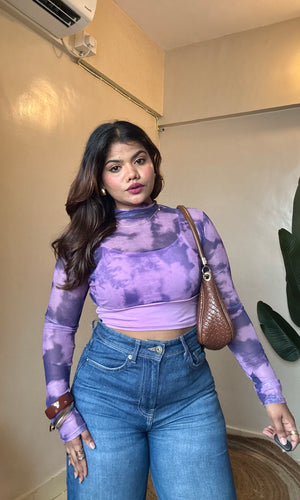 Purple Marble Print Mesh Padded Top