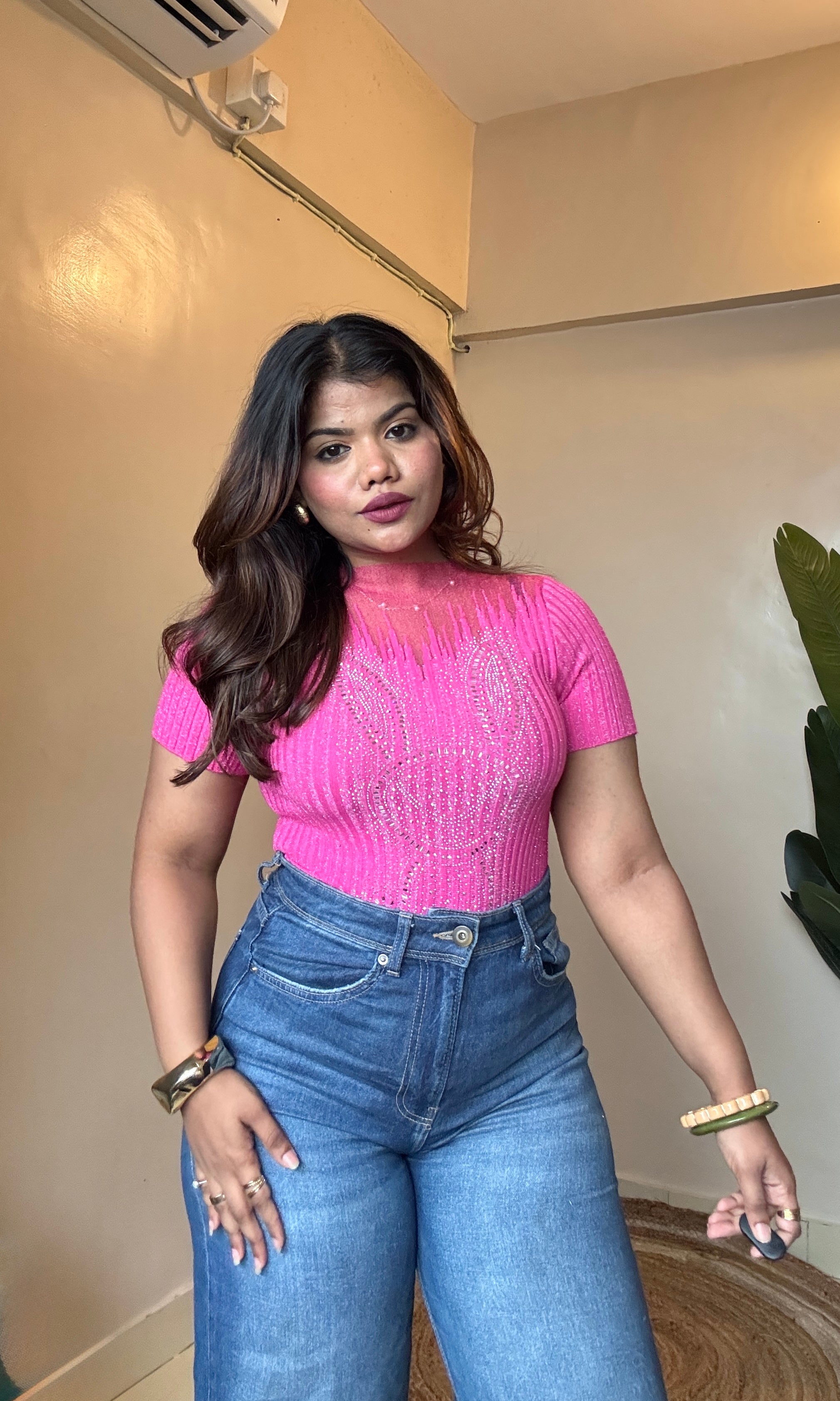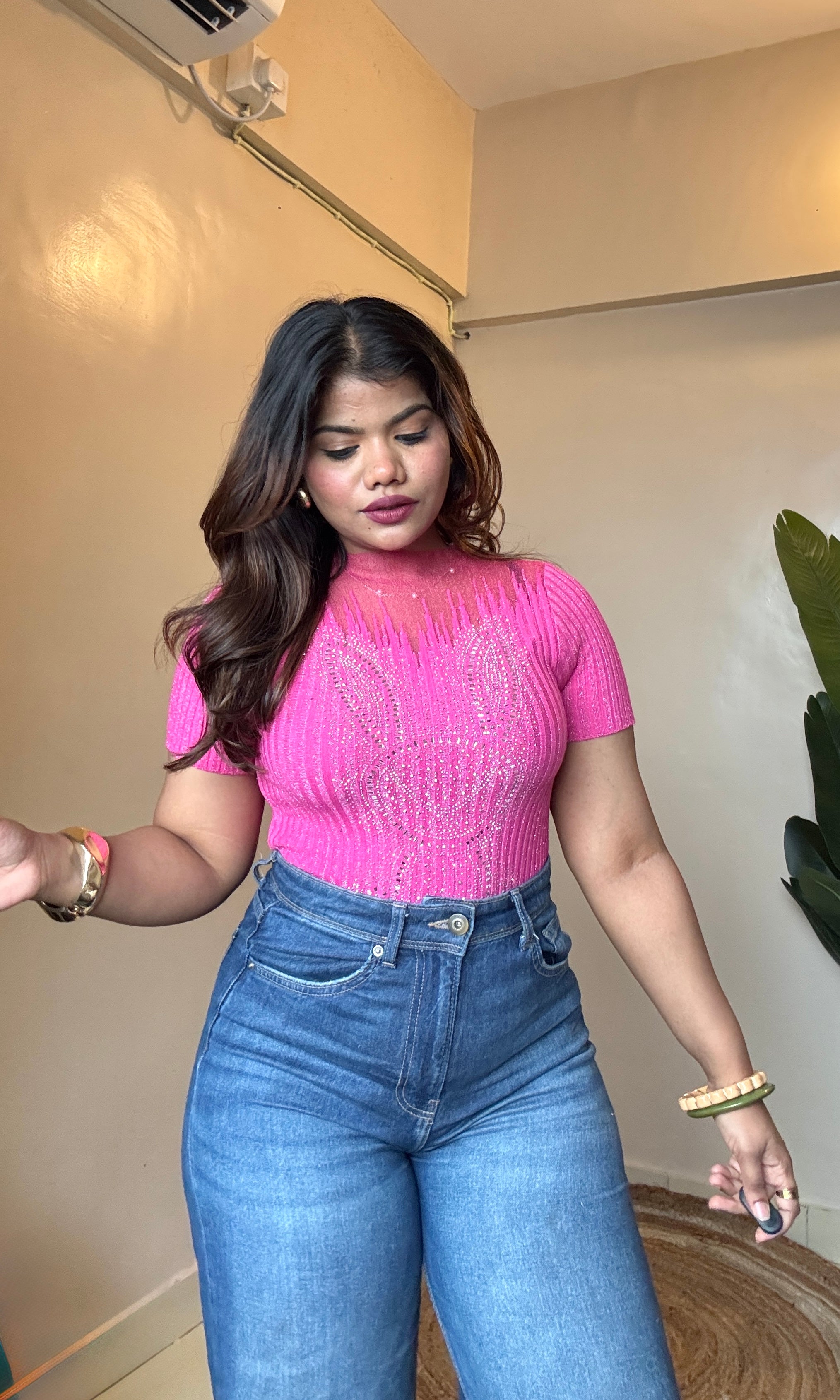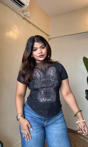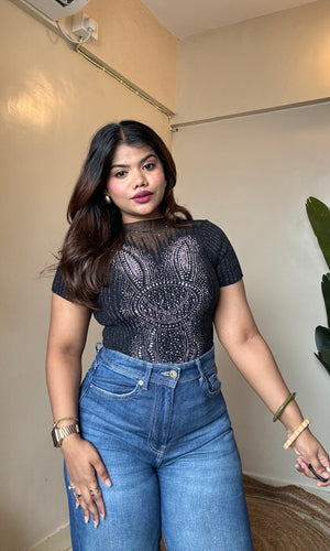 Rhinestone Work Mesh Top