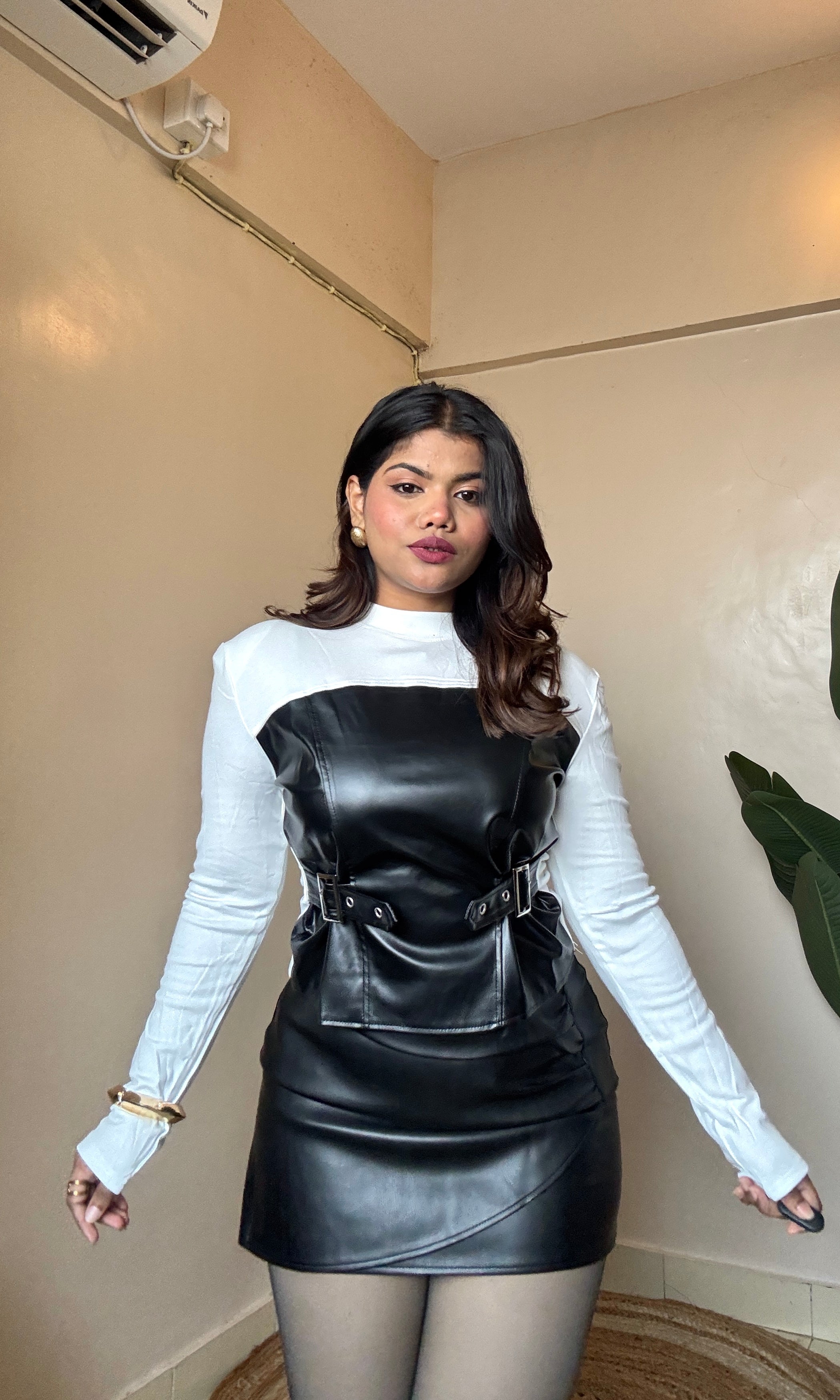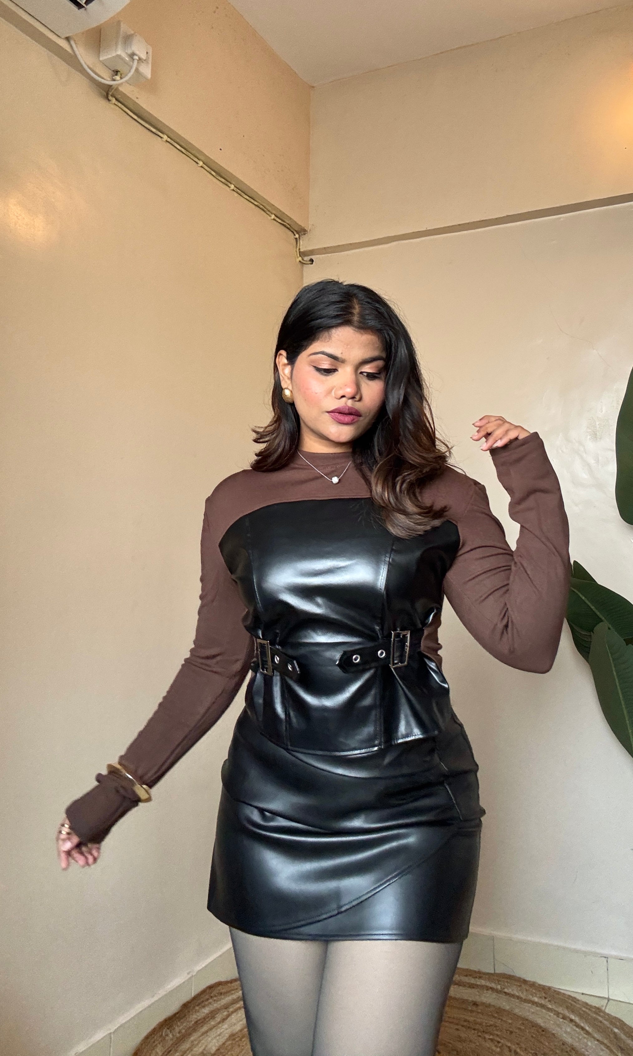 Structured Leather Panel Top