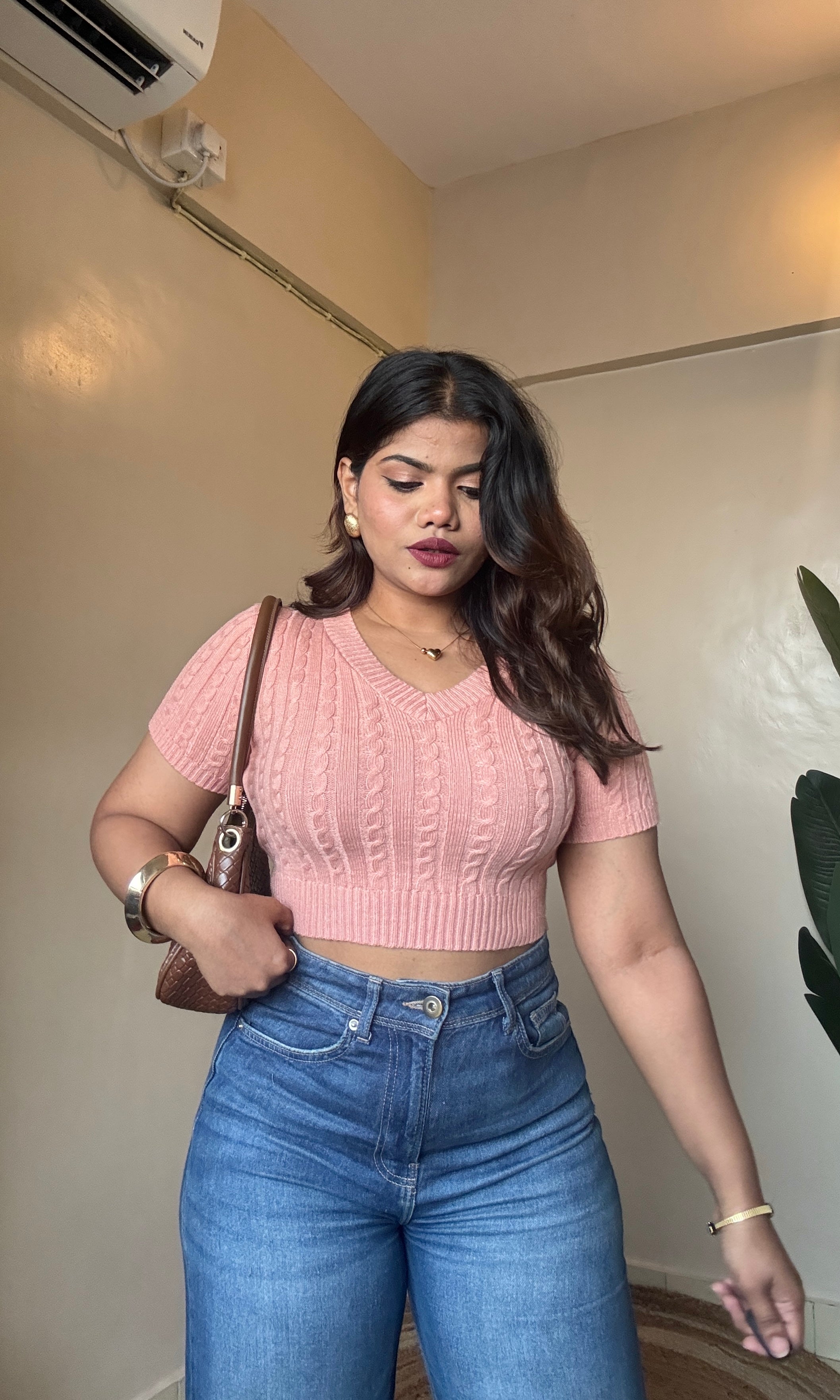 V Neck Cable-Knit Crop Top