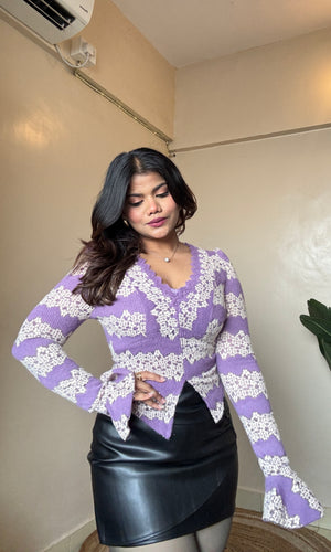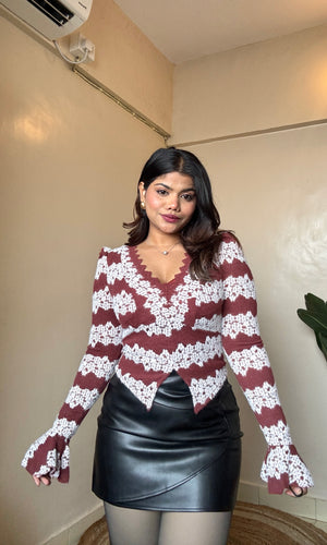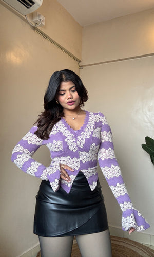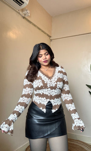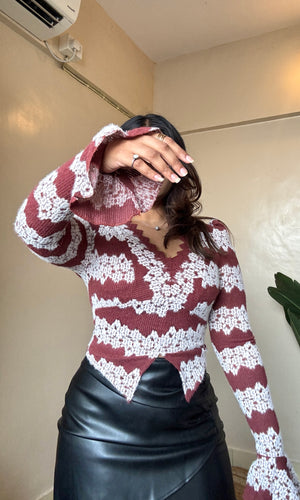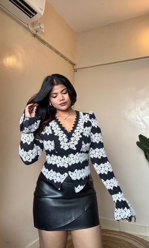 V Neck Lacework Bell Sleeve Top