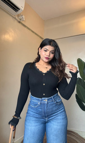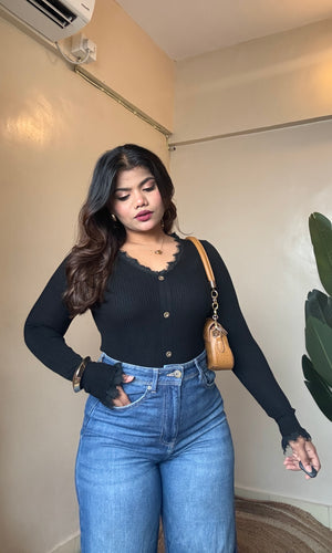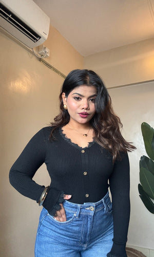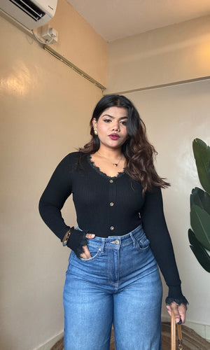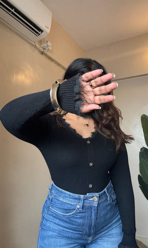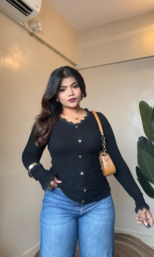 V Neck Lacy Ribbed Top