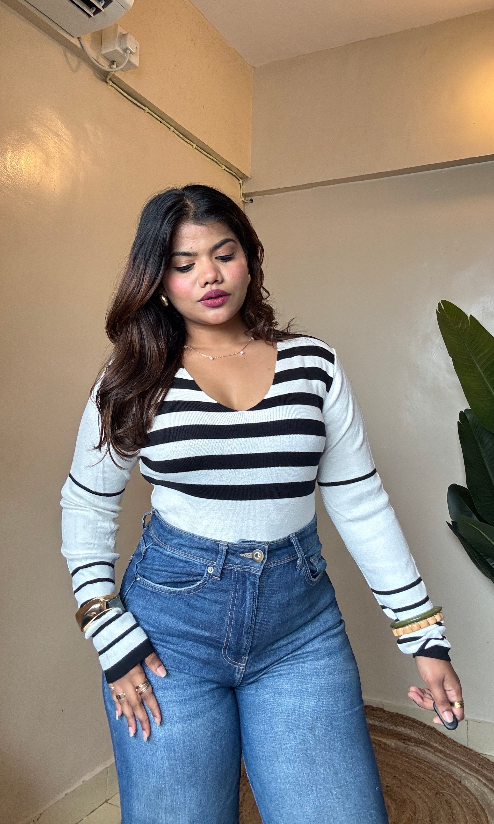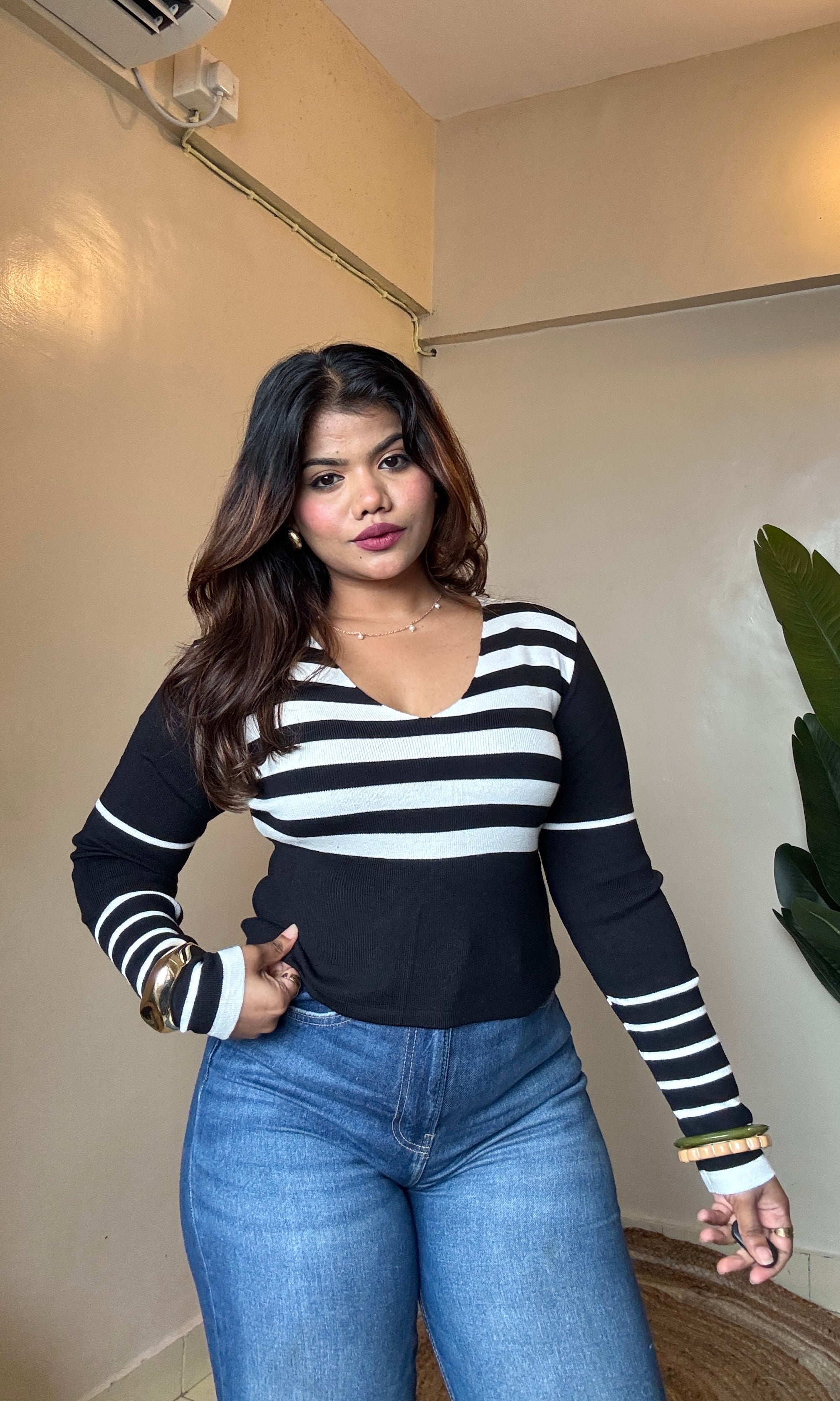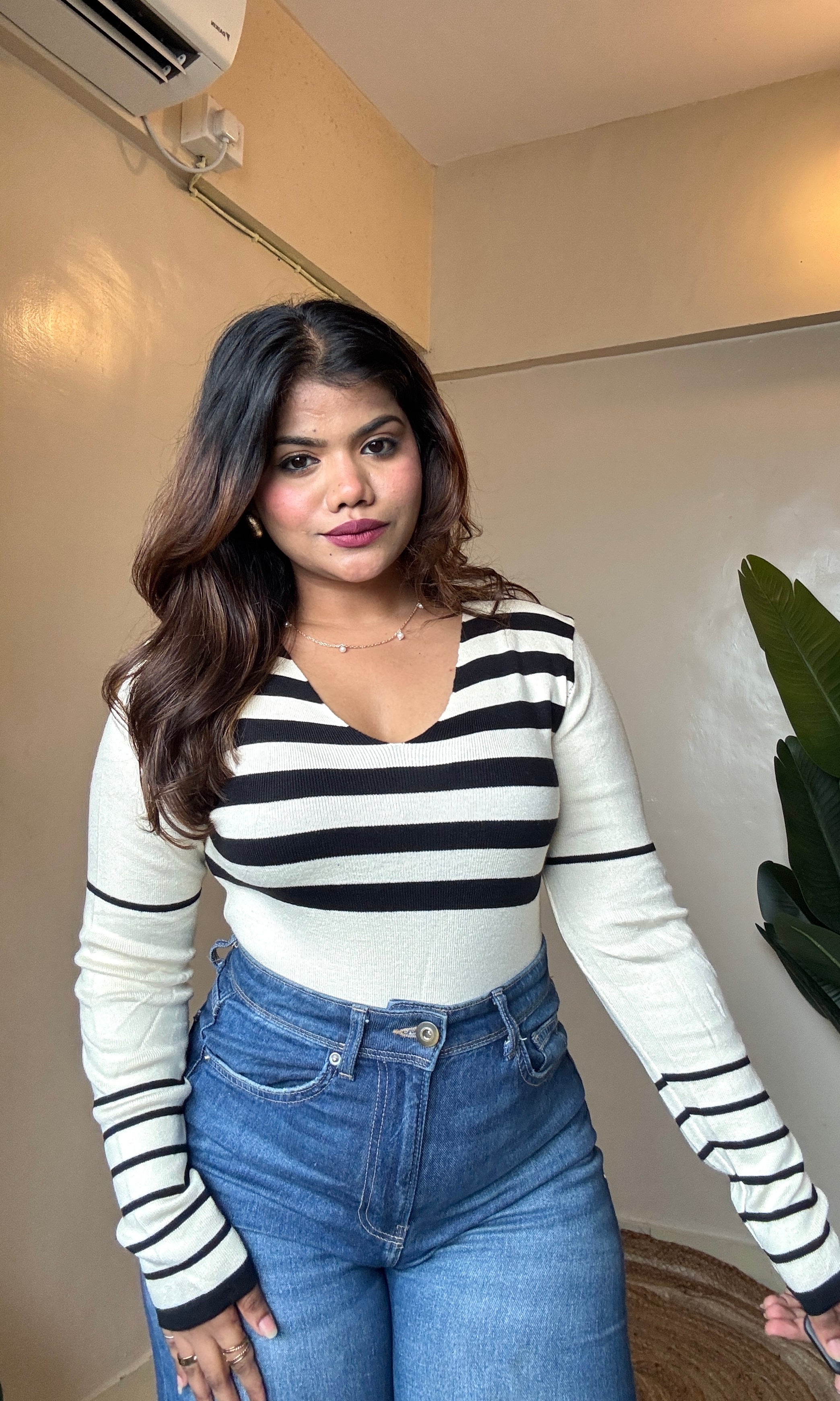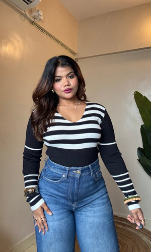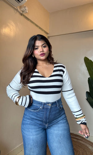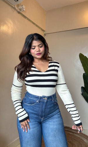 V Neck Striped Top