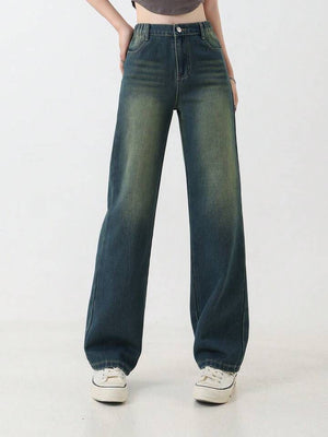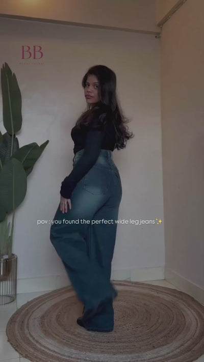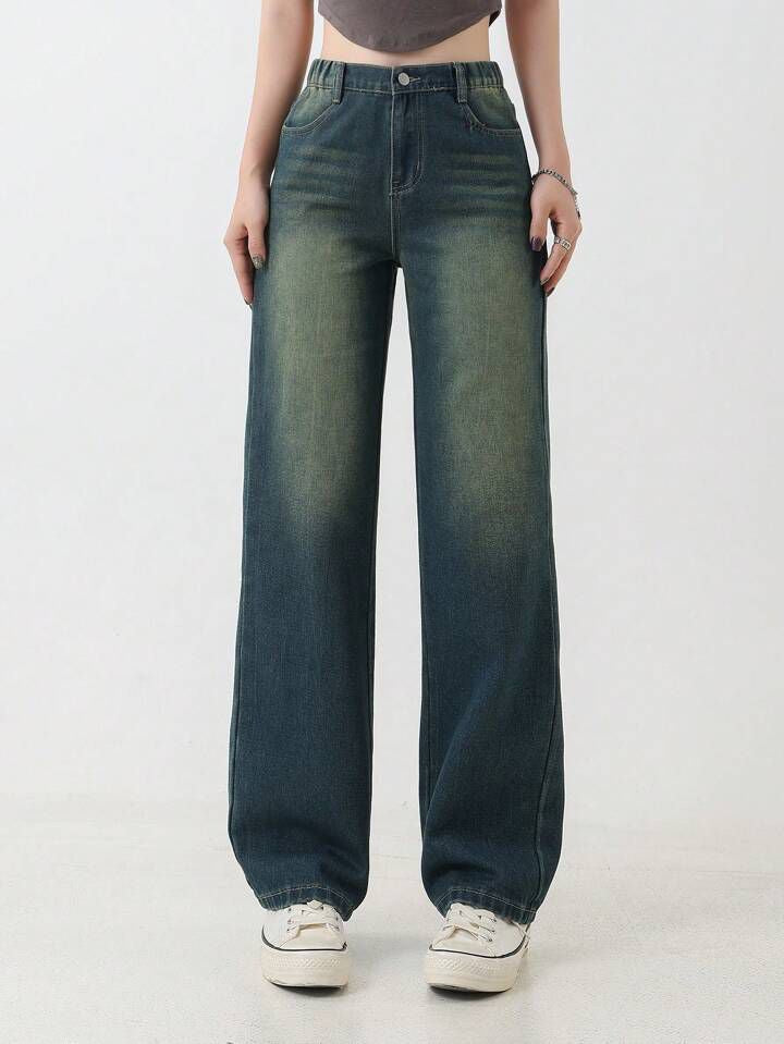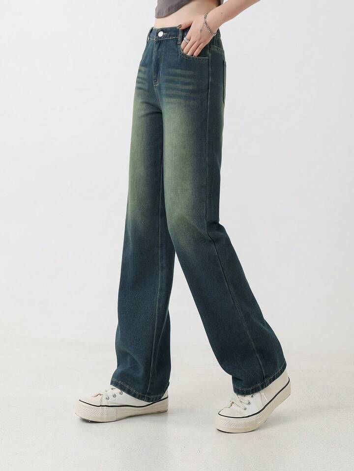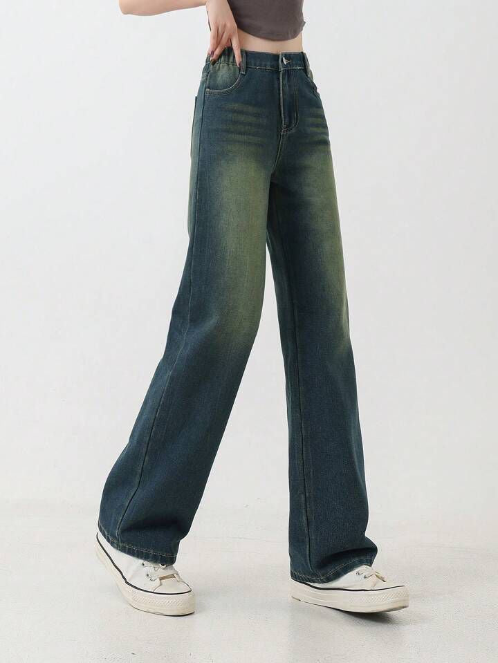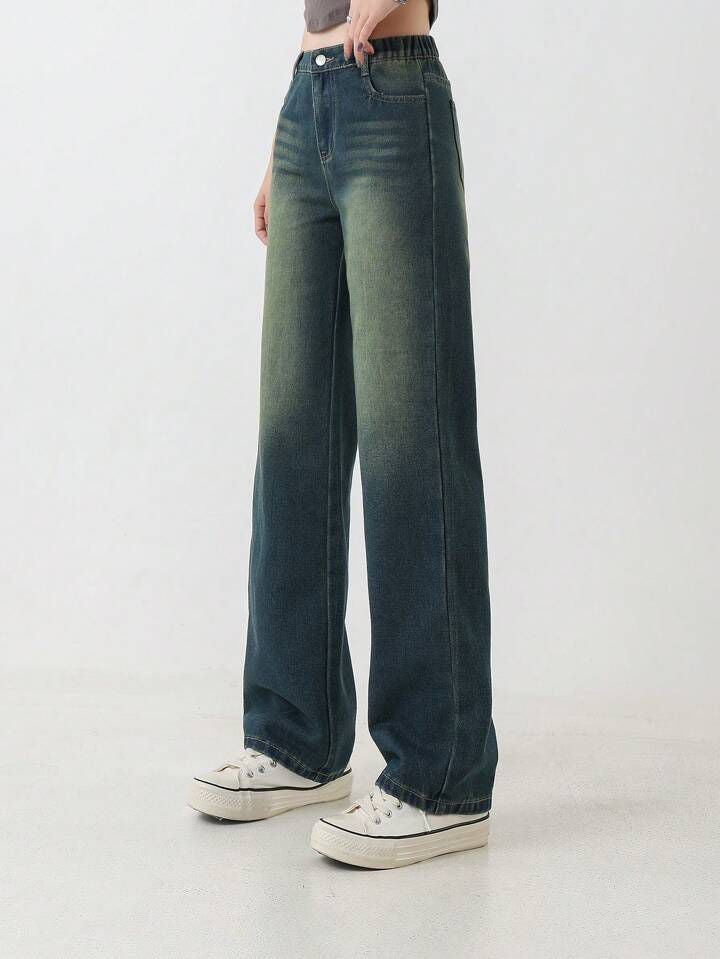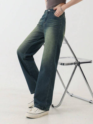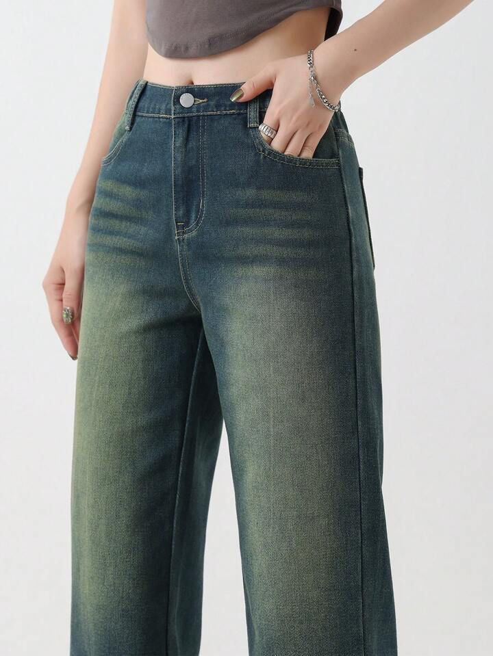 Vintage Greenish Tint High Waist Wide Leg Jeans