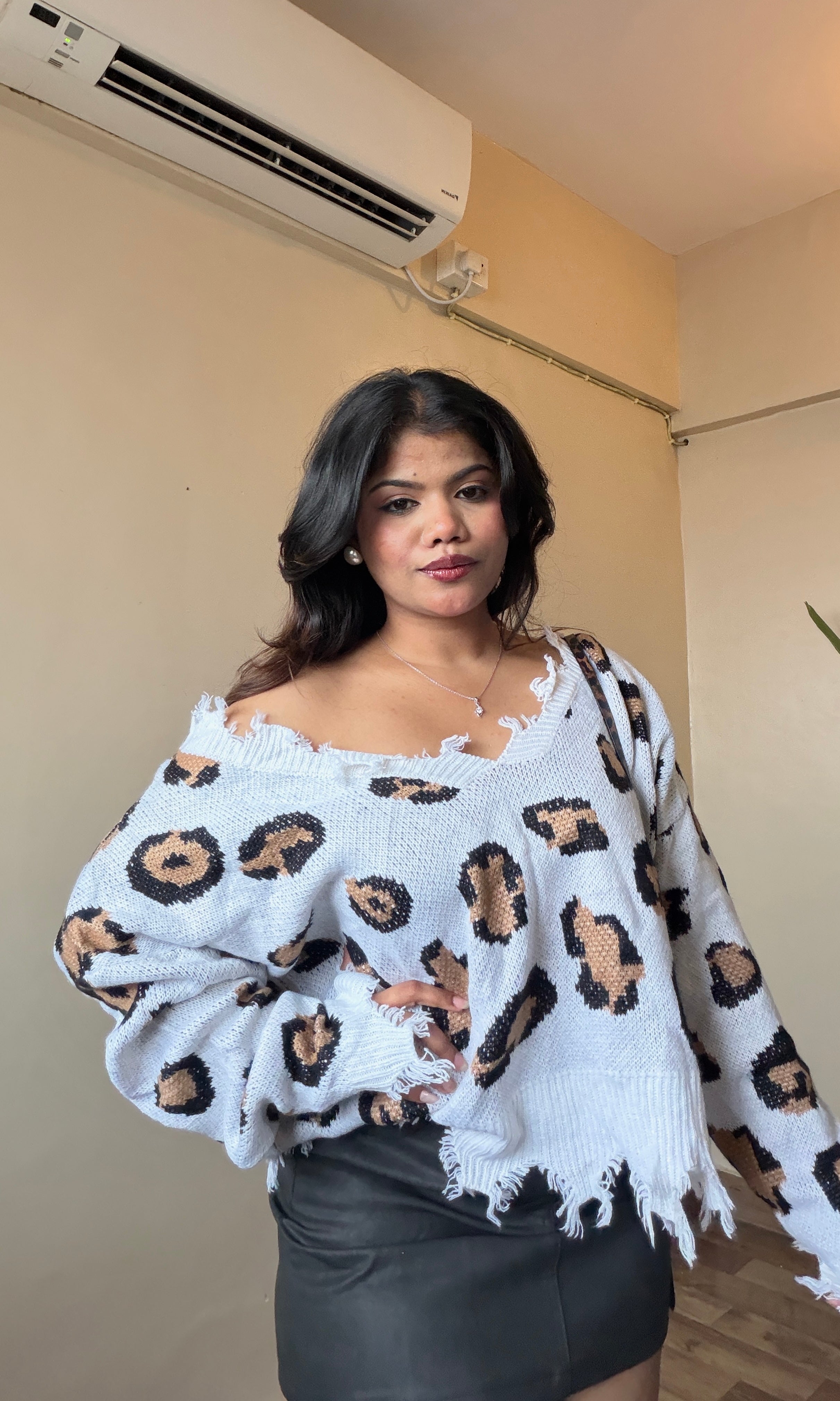 White animal patch print Knit Pullover