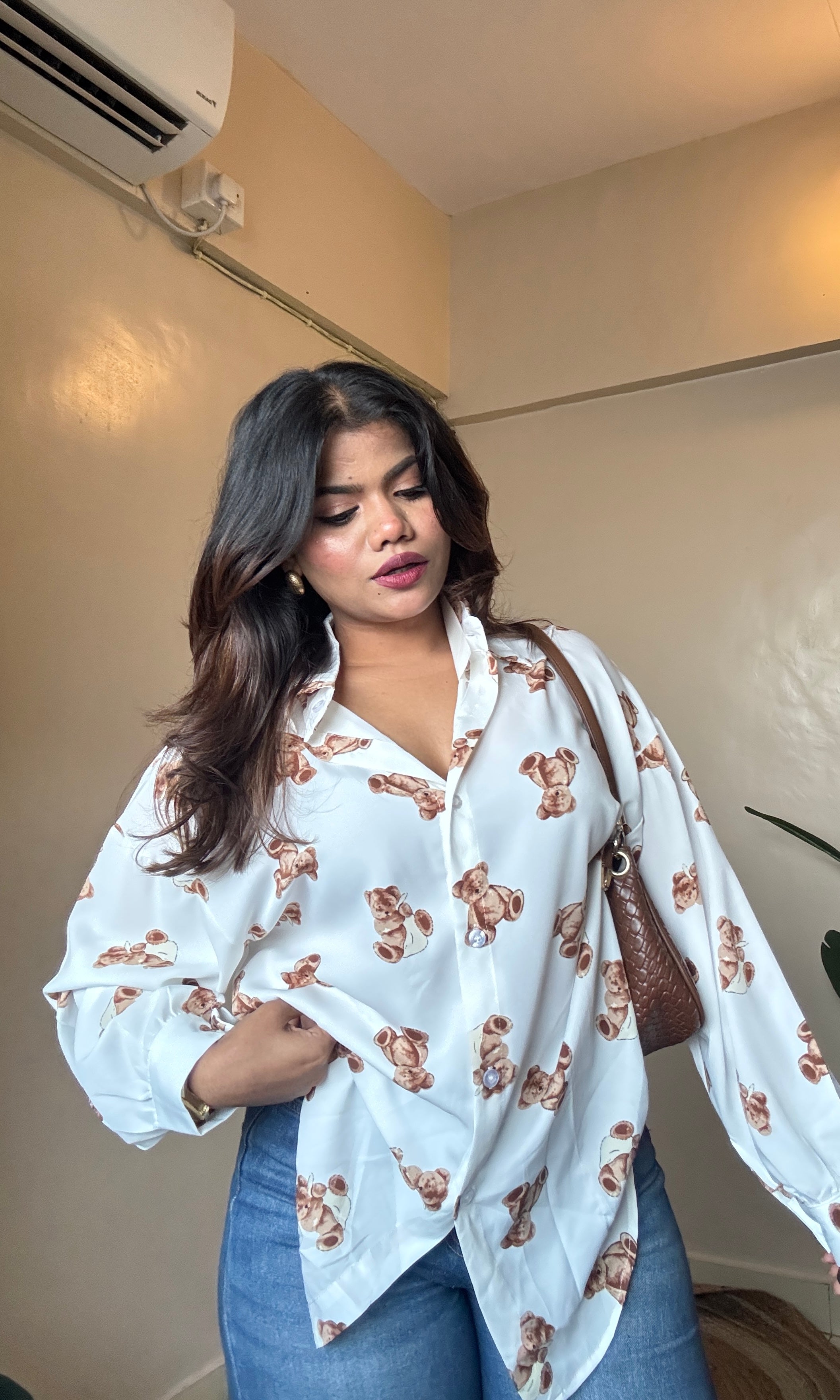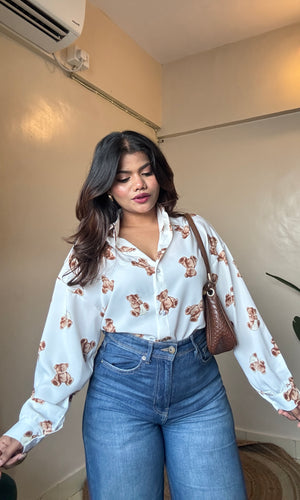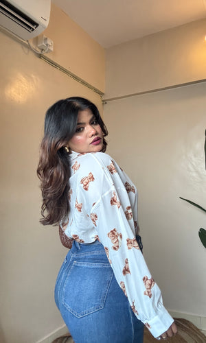 White Teddy Printed Imported Shirt