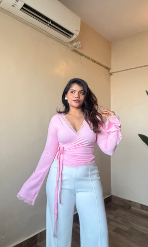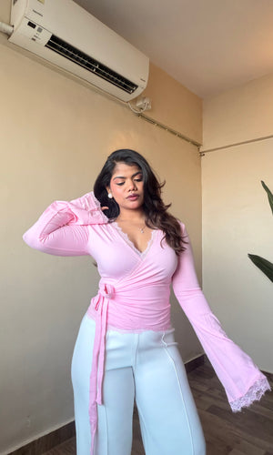 Wrap Body-Fitted Bell Sleeve Top #2675